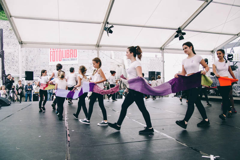 tejan una bufanda que ya alcanza casi los 5 kilómetros (en Olatu Talka 2018 se han tejido 88 metros) en homenaje a las miles de mujeres victimas de la violencia sexista, y para concienciar sobre este lastre que padece la sociedad. Olatu Talka ha querido sacar a colación este tema una vez más y ha ofrecido la coreografía creada por la bailarina Elene Carreto con sus alumnos de Elorrio,tomando como eje la bufanda. Ha sido una actuación muy conmovedora, realizada con la canción Korapilatzen de la cantante donostiarra Olatz Salvador. Al finalizar la danza los bailarines y las bailarinas han colocado los trozos de bufanda en la parte trasera del escenario.