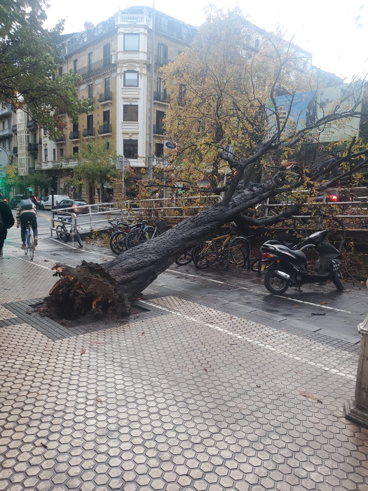 El viento tira un árbol sobre un coche en el Paseo de Zorroaga