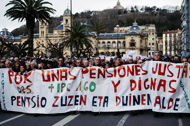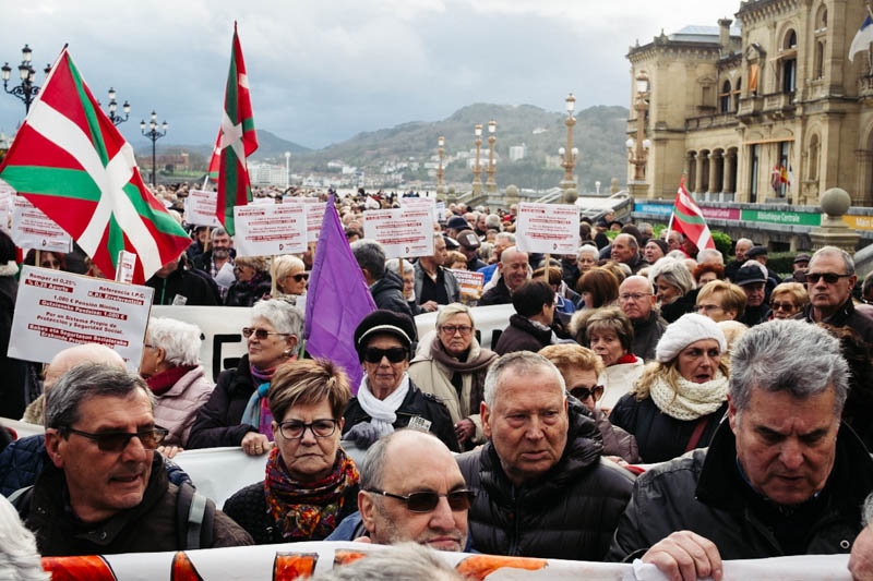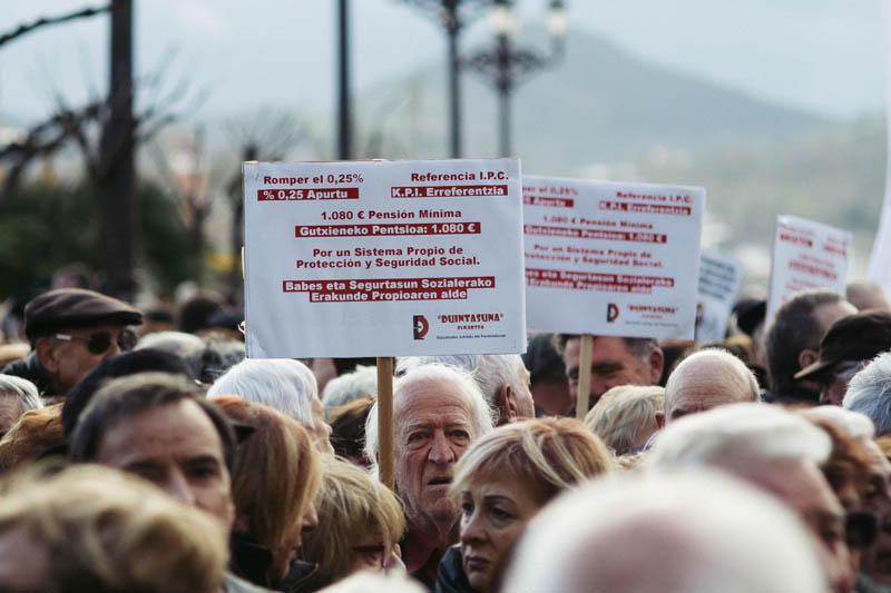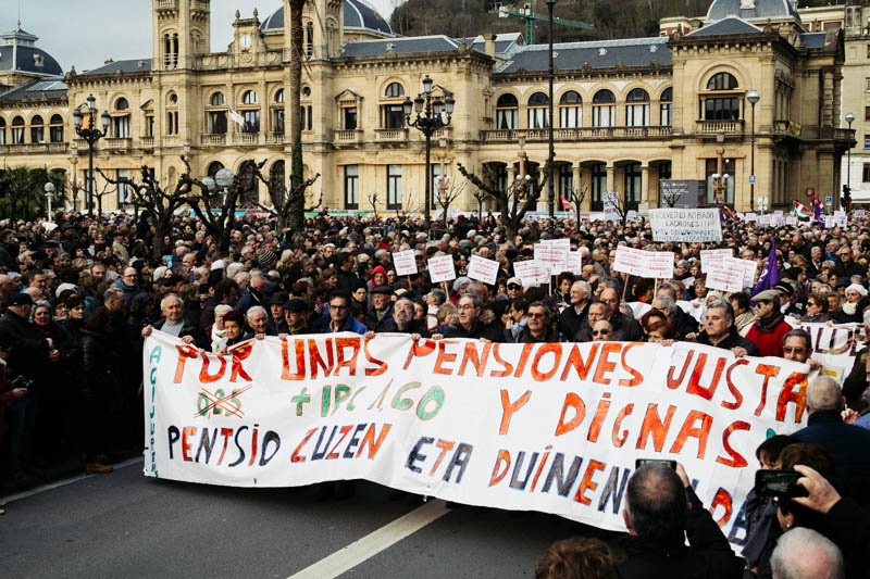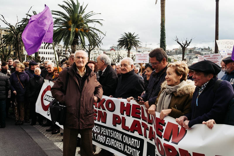Una unión poco habitual en otras causas con personas de todas las edades y diferentes tendencias políticas es lo que se ha visto esta tarde en Donostia con motivo de la manifestación de los pensionistas que ha reunido a miles de personas en Alderde Eder. Miles de personas con la convicción de que gran parte del bienestar futuro depende de las decisiones que se tomen ahora y que tras la actuación del Gobierno español durante la última semana se muestran «decepcionadas» y «en la lucha».