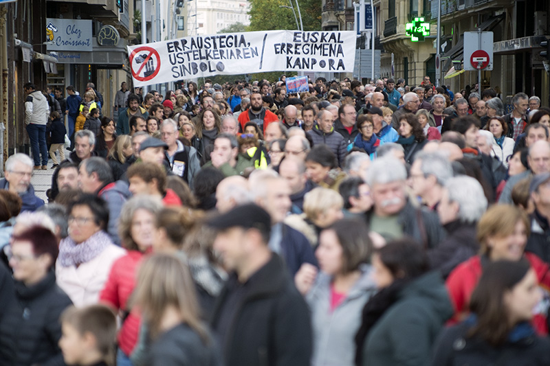 Ha habido otras concentraciones contra la infraestructura pero nunca con tantos organizadores al unísono, ya que la llamada de hoy provenía de Erraustegiaren Aurkako Mugimendua, GuraSOS, Gipuzkoa Zutik, GEIS/OEIT, ELA, LAB, CCOO, ENHE, ESK, STEE, HIRU, ERNAI, Eguzki y Greenpeace.