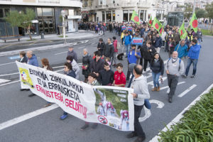 La marcha ha comenzado en la plaza Centenario, igual que en otras ocasiones, y a lo largo de la misma se han escuchado reiterados eslóganes contra la obra de Zubieta.