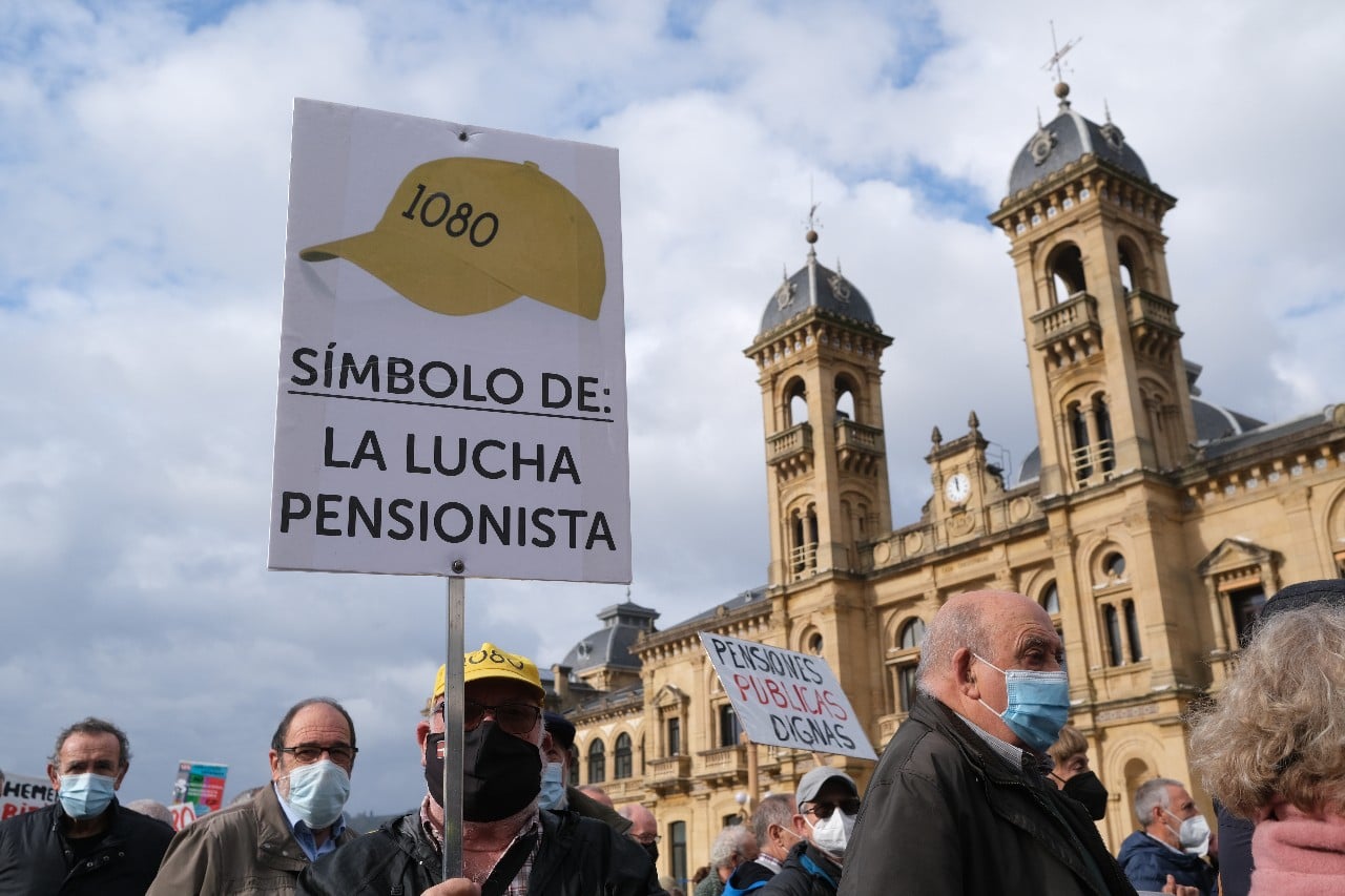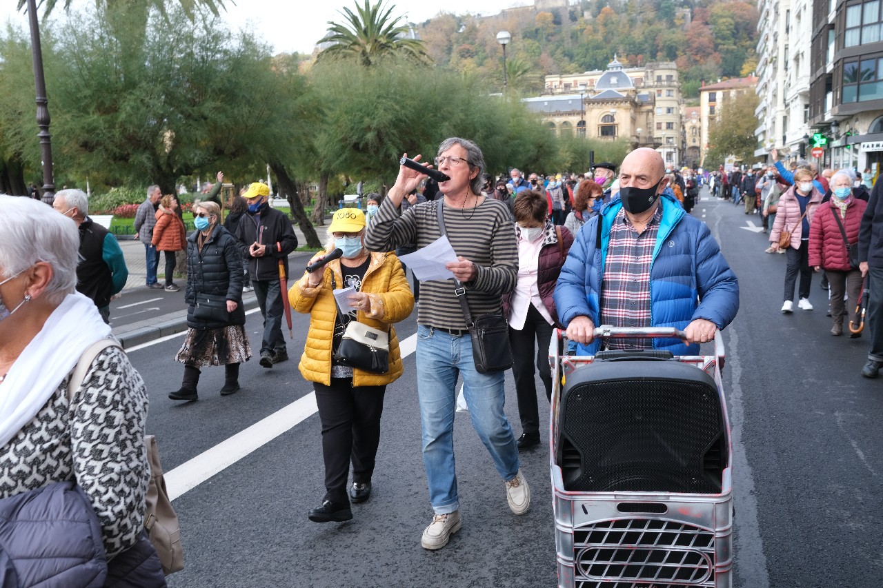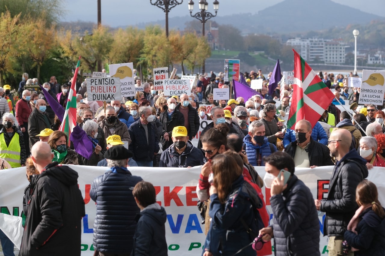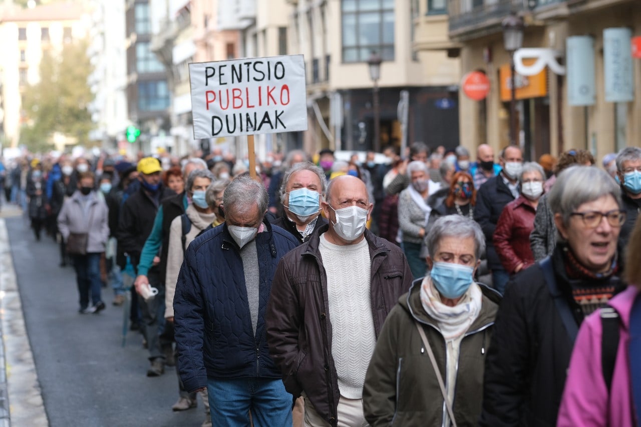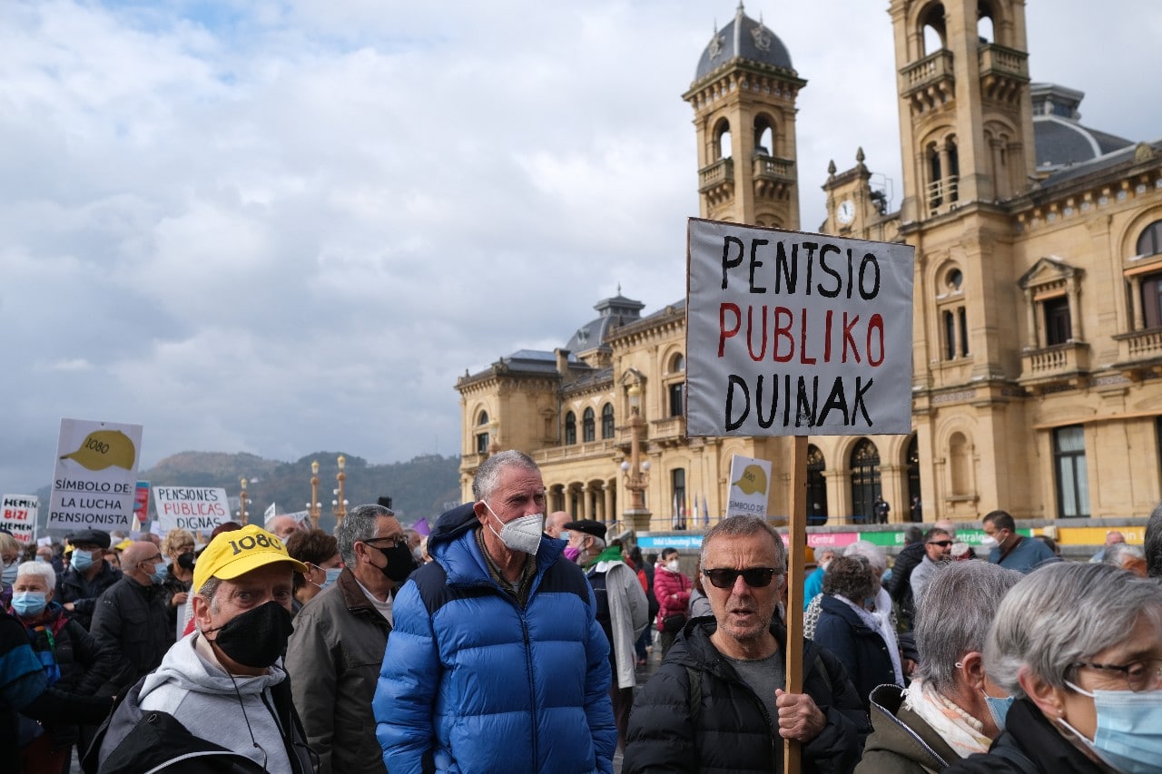 Miles de pensionistas gipuzkoanos han salido a la calle hoy en Donostia, al igual que en Vitoria (esta tarde lo harán en Bilbao) y en el resto del Estado para defender su derecho a una pensión digna y pedir la dimisión del ministro de Inclusión, Seguridad Social y Migraciones José Luis Escrivá.