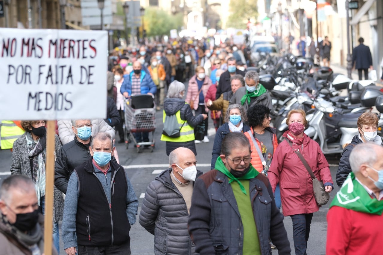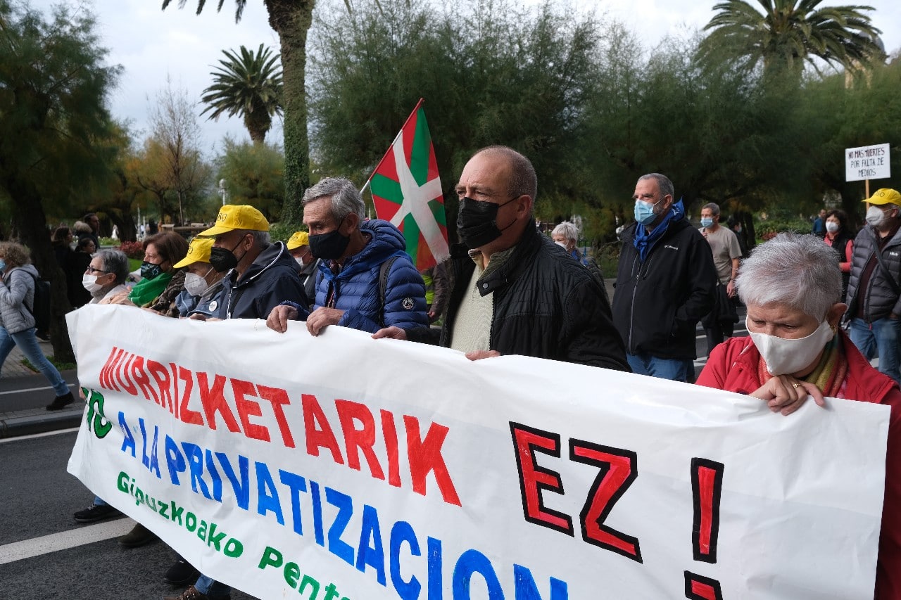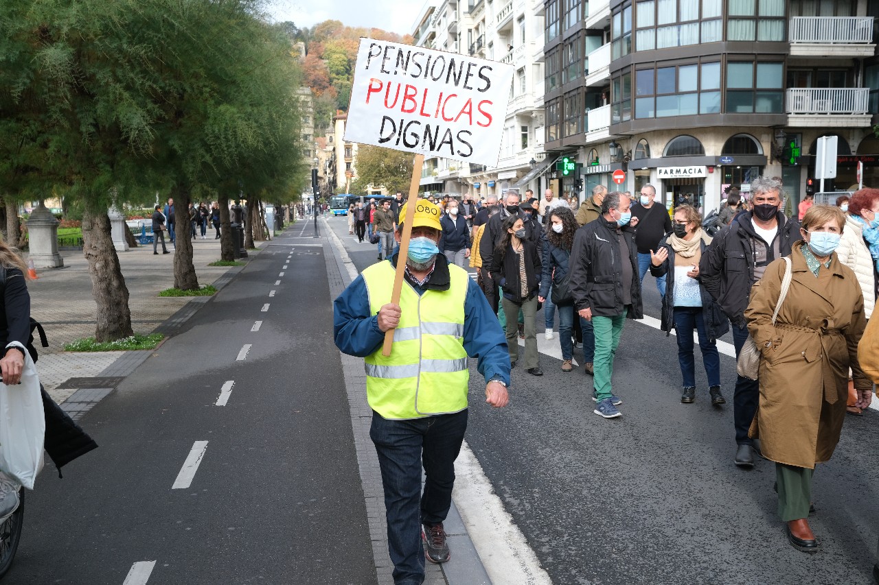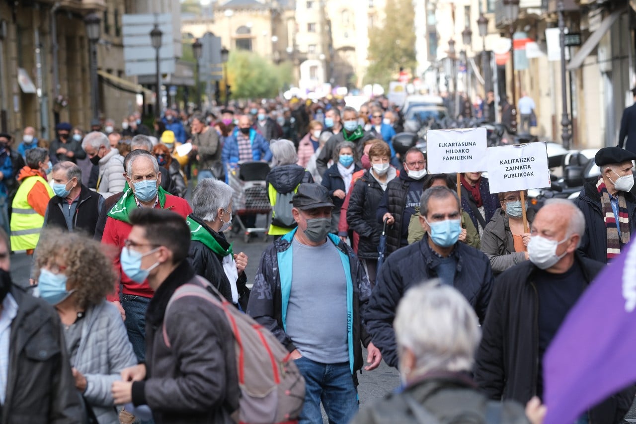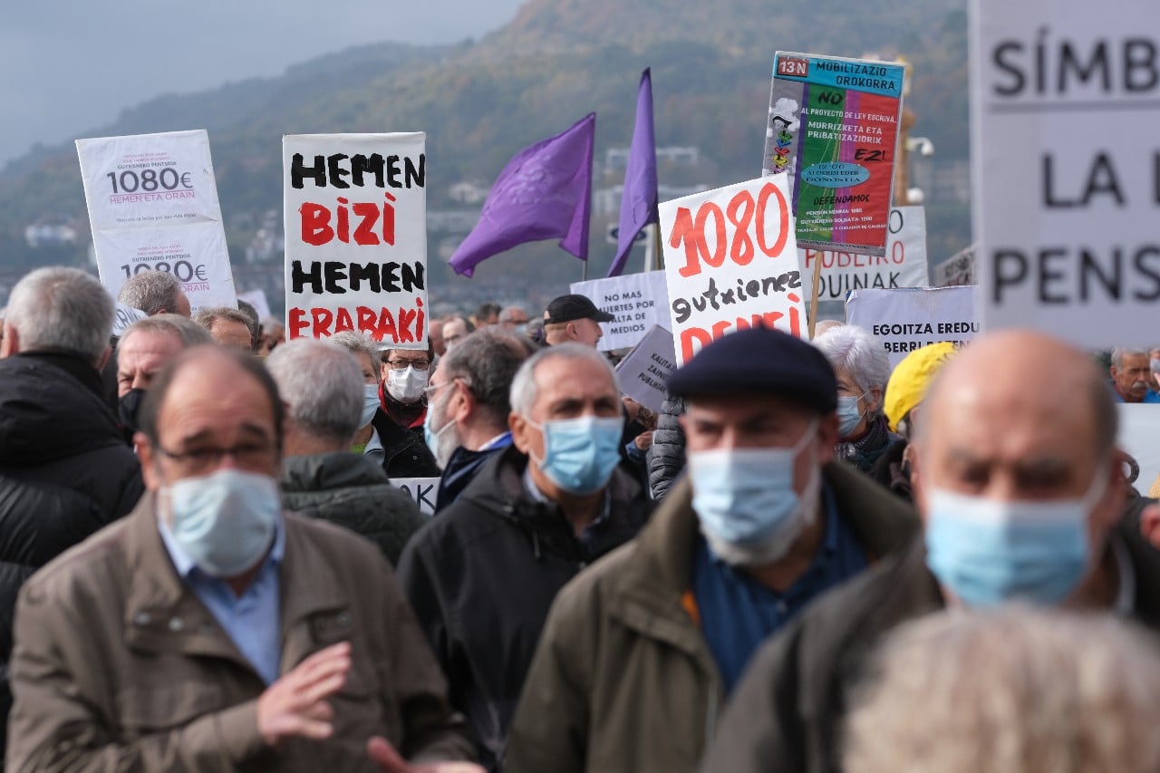 Miles de pensionistas gipuzkoanos han salido a la calle hoy en Donostia, al igual que en Vitoria (esta tarde lo harán en Bilbao) y en el resto del Estado para defender su derecho a una pensión digna y pedir la dimisión del ministro de Inclusión, Seguridad Social y Migraciones José Luis Escrivá.