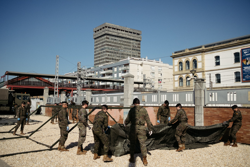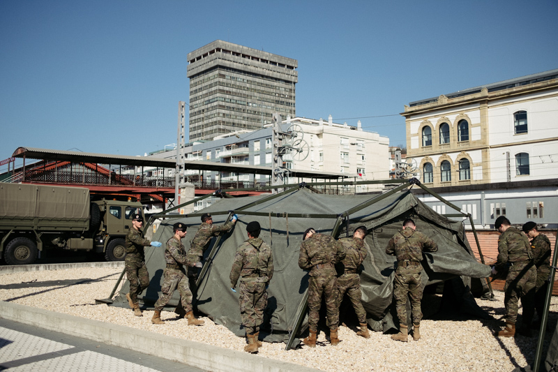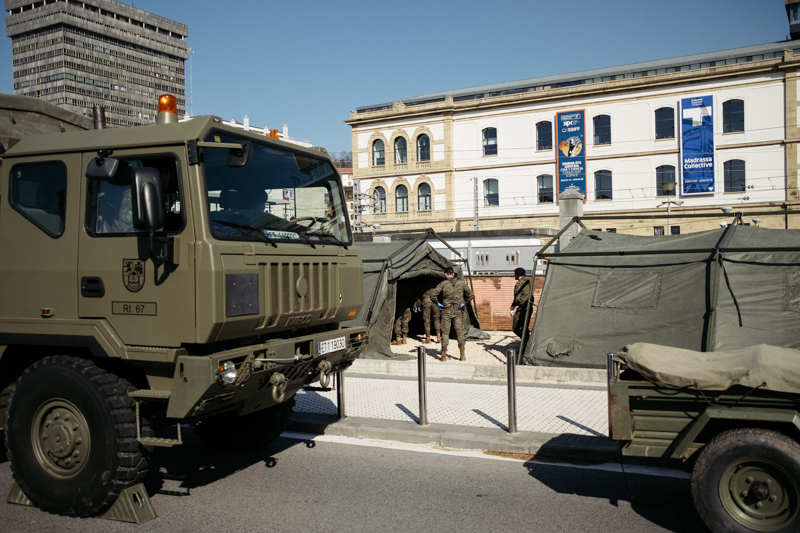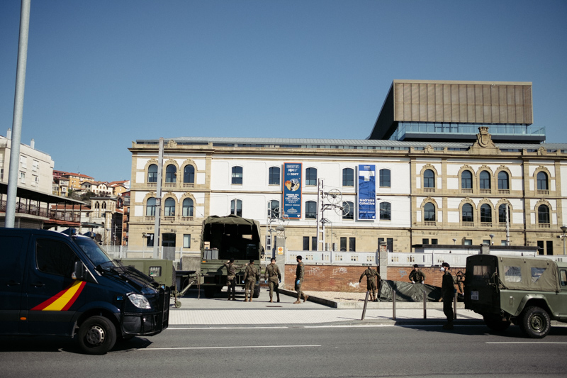 Tras actuar en infraestructuras estatales de Bilbao y Gasteiz, el Ejército ha trabajado esta tarde en Donostia con el objeto de desinfectar la estación del Norte. Según el delegado de Gobierno Denis Itxaso se han desplegado 62 militares, 3 vehículos ligeros, 5 vehículos pesados, 2 remolques y 2 tiendas tipo Utilis.