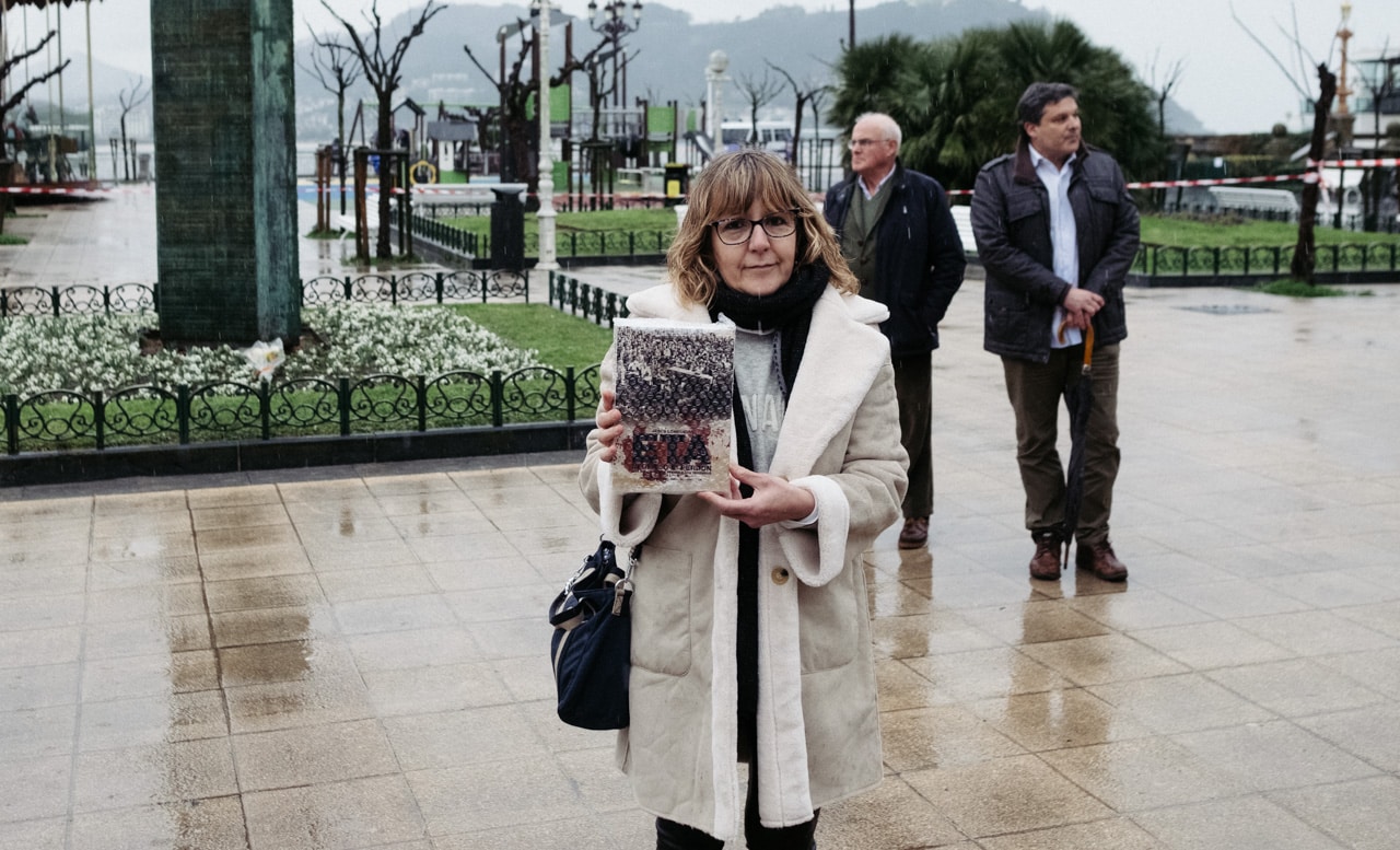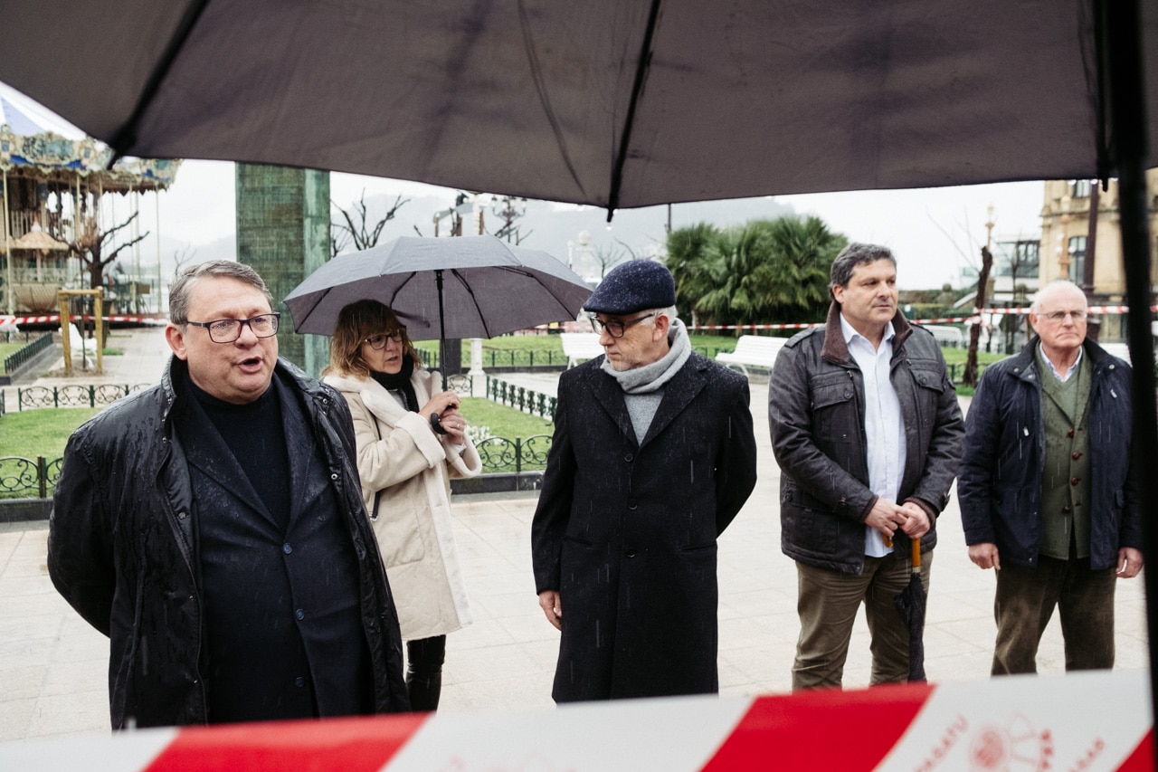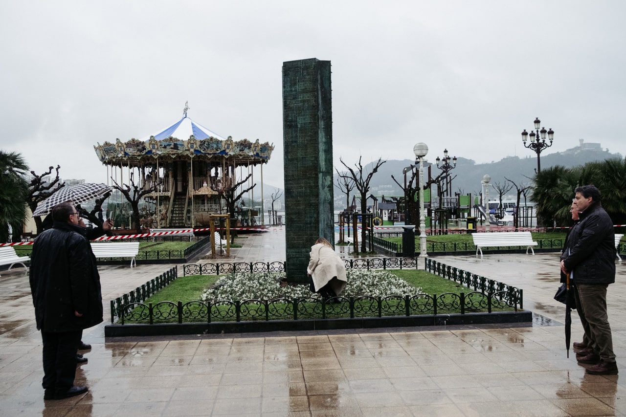 En el acto, que ha tenido lugar a las 17.00 horas junto a la escultura en memoria de las víctimas del terrorismo ubicada en los jardines de Alderdi Eder de San Sebastián, han participado el autor del libro, su editor Álvaro Romero, y Martín Sáenz de Ynestrillas, además de María Isabel Fernández Pena, que ha sido la encargada de depositar las flores frente al monolito.