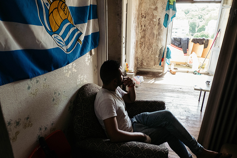 Vidal es marroquí y lleva dos meses viviendo aquí, desde que se separó. Niega que se venda droga como afirman algunos vecinos de Árbol de Gernika. Sin embargo no niega que a veces hay altercados entre ellos, aunque de los mismos responsabiliza a una nacionalidad en concreto. Respecto a las acusaciones de los vecinos lo tiene claro: «Nos quieren echar y dicen lo de las drogas. La casa está muy mal por fuera, pero dentro no. Cada cual tiene su cama», afirma, invitando a entrar a Donostitik.