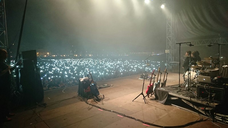 La solidaridad con las víctimas del atentado de Barcelona de ayer se notó pronto en las calles donostiarras, donde hubo dos gestos similares en dos actos festivos de la Semana Grande: poco antes de comenzar los fuegos artificiales y minutos antes del concierto de Los Secretos en Sagües. En ambos casos miles de personas iluminaron la noche con sus móviles en señal de duelo por lo ocurrido.