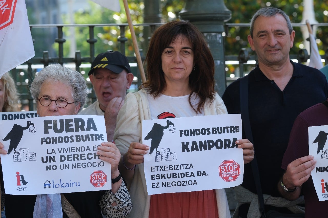 «Estamos hartos de ver vaciar edificios en Donostia para convertirlos en hoteles o en viviendas de lujo», ha insistido Rosa García, quien ha denunciado que, además de que Pedro se enteró por medio del periódico de los planes que había para Sancho el Sabio 35, «sufrió presiones y le cortaron la calefacción y el agua caliente». García también ha contado que el Ayuntamiento está mediando en favor de este hombre, cuya familia habita en la casa desde los años 60.