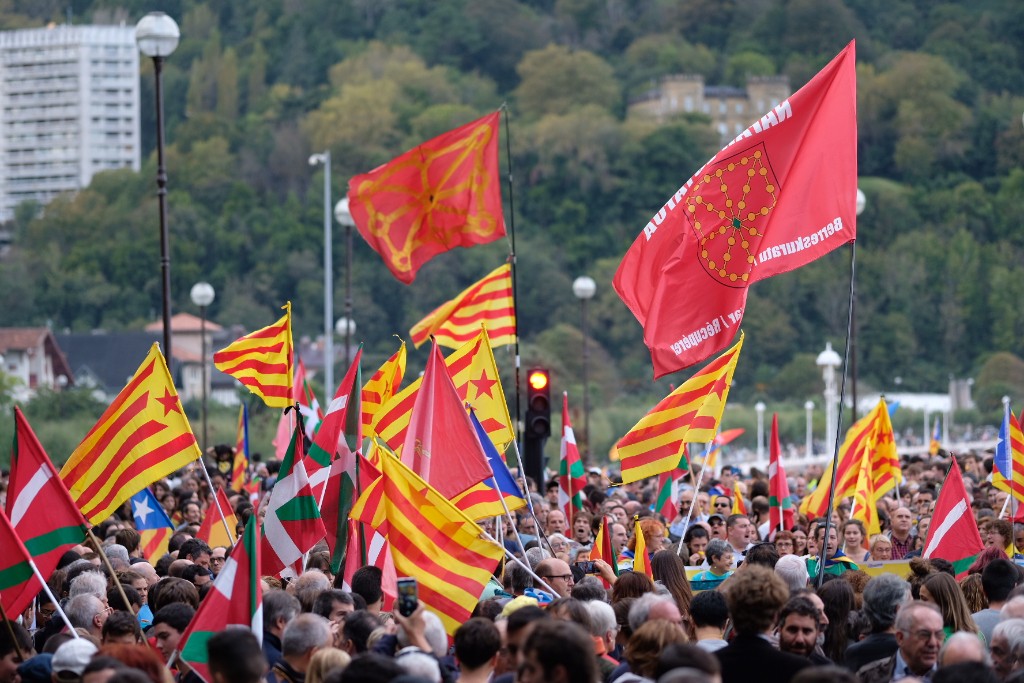 Se preveía multitudinaria y así ha sido la manifestación organizada en Donostia por Gure Esku Dago contra la sentencia del ‘procés’. Banderas catalanas e Ikurriñas, pancartas por el derecho a decidir y miles y miles de personas de los tres Territorios han partido del túnel del Antiguo a las 17.30 horas en dirección al Boulevard.