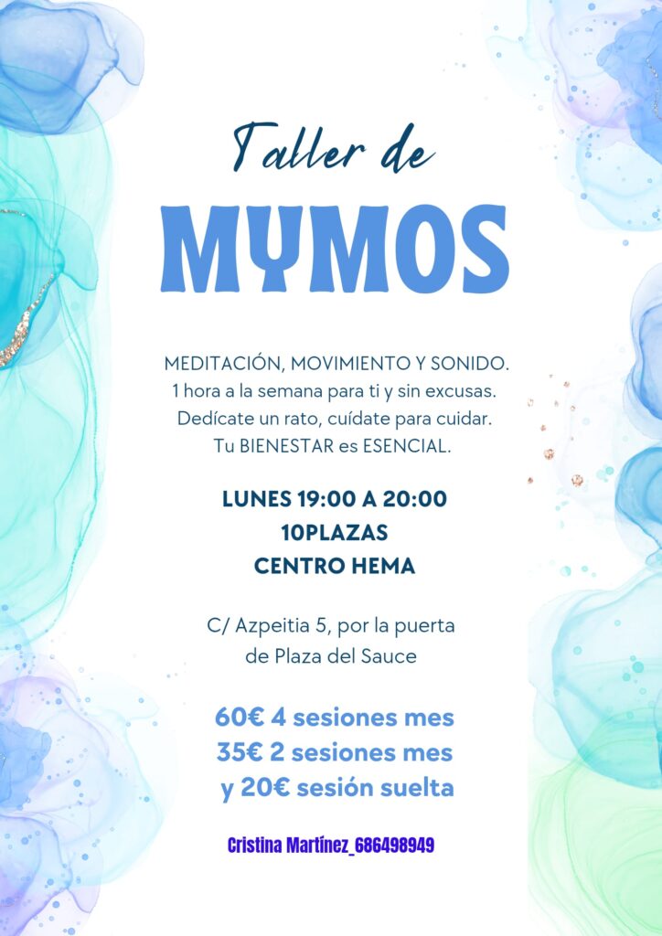 Las sesiones de MyMOS tienen lugar los lunes a las 19 horas en el Centro HEMA de la calle Azpeitia (Amara Berri). Para más información o inscripciones se puede contactar directamente con Cristina: 686498949, [email protected], @crisbueu.
