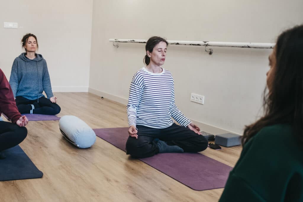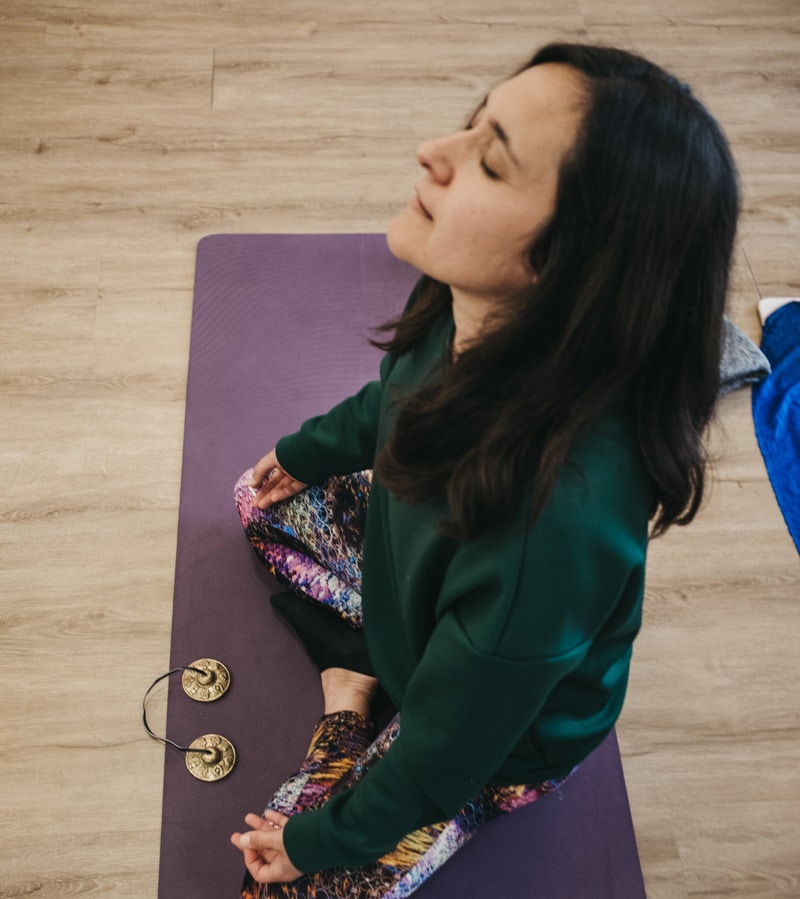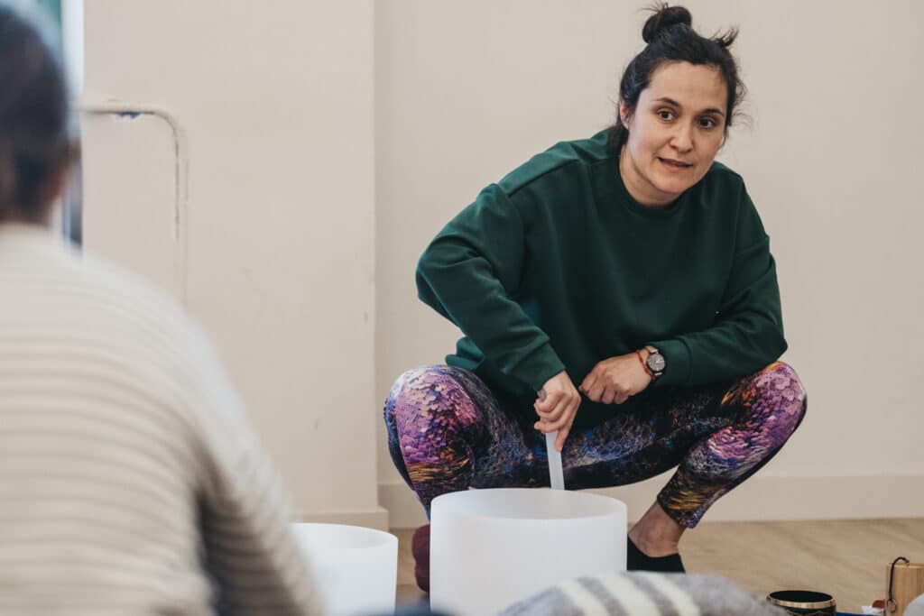 En cada sesión Cristina guía con suavidad a través de ejercicios de respiración (pranayamas), meditaciones guiadas, movimientos inspirados en el yoga o el Qigong y baños de sonido. “Una clienta me decía que, gracias a lo aprendido en clase, fue capaz de gestionar unas turbulencias muy fuertes en un vuelo esta Semana Santa. Aplicó las respiraciones y lo llevó muchísimo mejor. Esas cosas te dan sentido”.