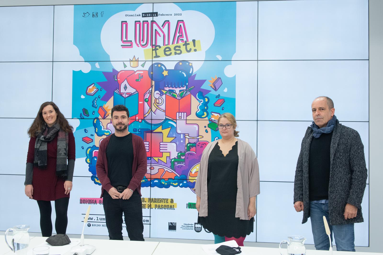 San Sebastián acogerá los días 9, 10 y 11 de febrero el festival LUMAfest!, impulsado por la Diputación de Gipuzkoa y el centro cultural Koldo Mitxelena con el objetivo de fomentar la literatura creada por y para los jóvenes. El diputado foral de Cultura, Harkaitz Millan, aseguró ayer durante la presentación que «merece la pena hacer un intento para contribuir a la promoción y a la difusión de la literatura juvenil, precisamente porque es una etapa donde el público joven tiende a desaparecer de los espacios como las bibliotecas o los centros culturales». Mañana se lanzará un concurso en relación con este evento.