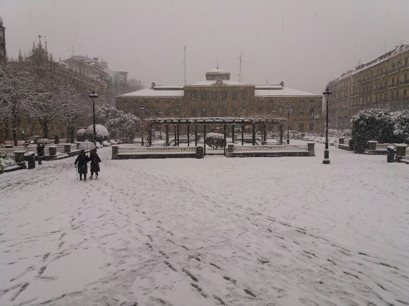 Estaba anunciada, pero los donostiarras dudaban de la posibilidad de ver nieve al nivel del mar y sin embargo esta mañana se ha pasado de la ilusión que produce ver La Concha nevada al caos más absoluto en las calles con Bomberos y Protección Civil intentando mantener abierta la subida al hospital y el acceso a las zonas altas de la ciudad, barrios prácticamente cerrados como Intxaurrondo, el acceso de la variante a Amara cortado y una treintena de autobuses de Dbus detenida porque resultaba imposible circular.