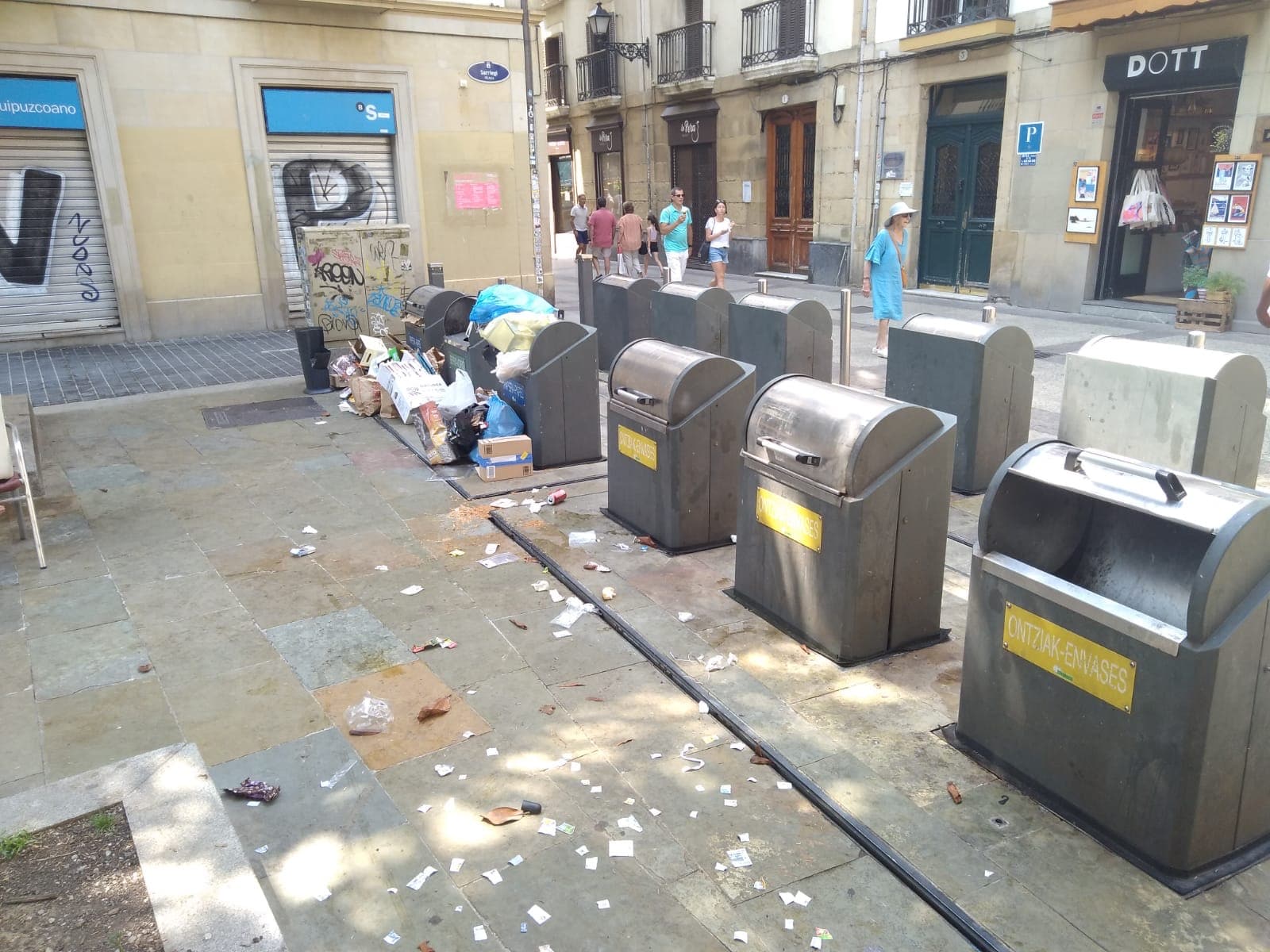 Denuncia una vecina de la Parte Vieja que esta mañana de sábado, 16 de julio, antes de las 11.30 horas, «que es cuando supuestamente recogen la basura», éste era el aspecto de calle Narrika. Desde luego llama la atención en plenas fiestas del Carmen del Puerto y con Donostia llena de visitantes. La imagen de abajo es la posterior a la recogida. Se preguntan los vecinos si no se puede reforzar el servicio en fechas tan populosas. Para enviar imágenes al Fotomatón: [email protected].
