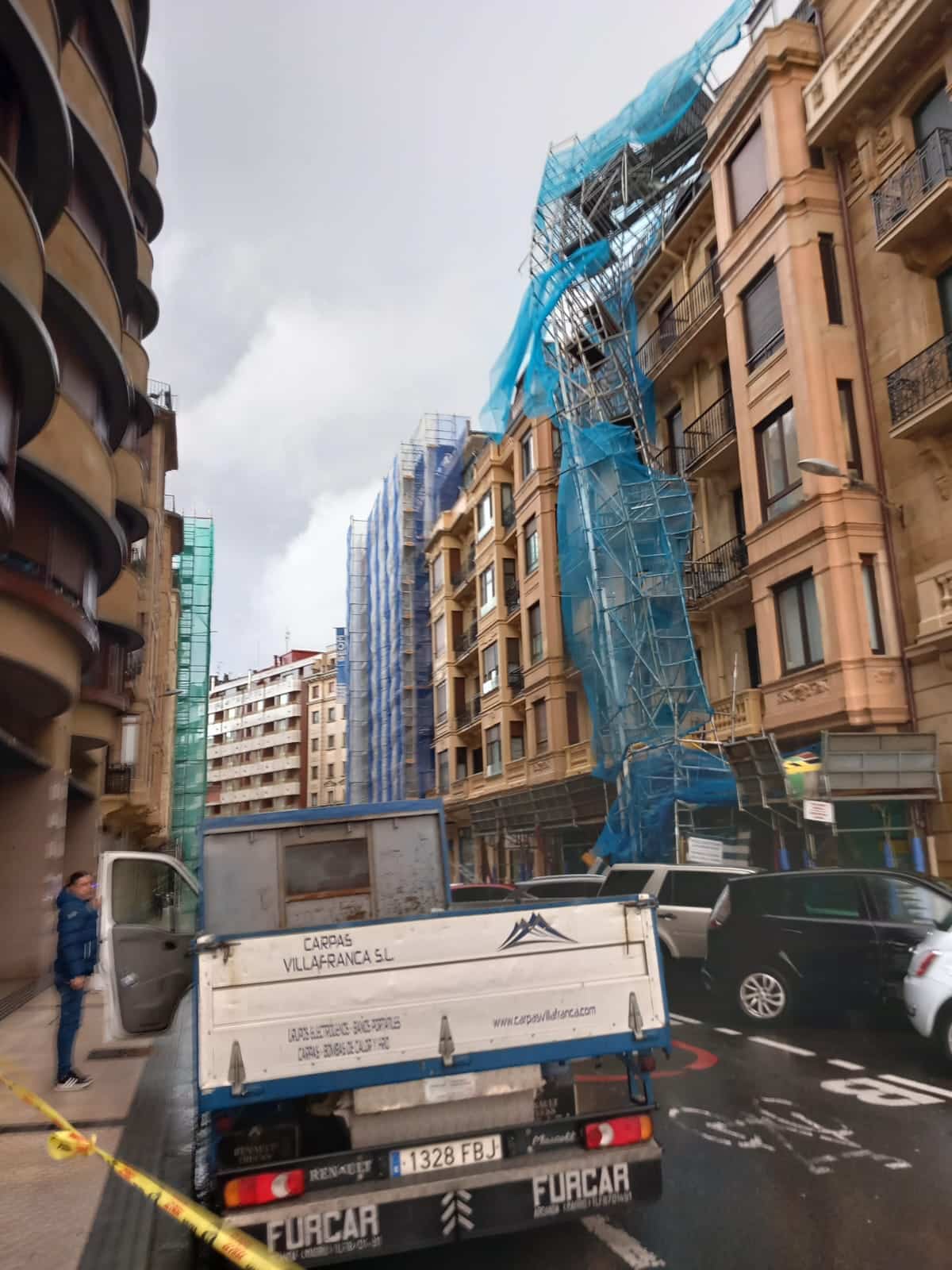 Han acudido Bomberos y Guardia municipal y han tratado de asegurar la estructura, pero los intentos han resultado infructuosos, por lo que han avisado a la empresa del andamio para que acuda a retirarlo. Mientras, esta mañana, la calle permanecía cortada para vehículos y peatones.
