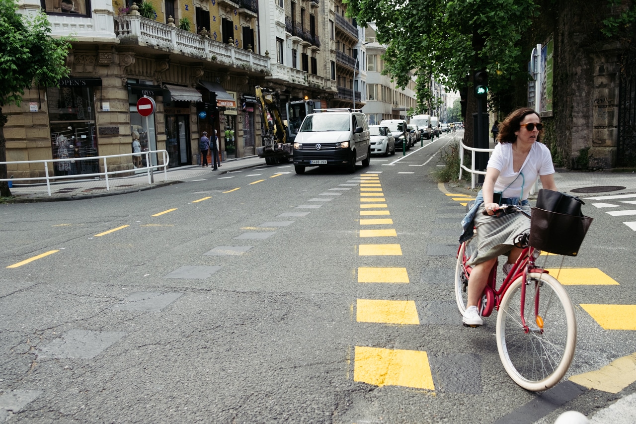 El actual tramo de bidegorri bidireccional de la c/San Martín entre las c/Manterola y c/Easo será unidireccional, solo permitirá circular dirección oeste, hacia el Antiguo.