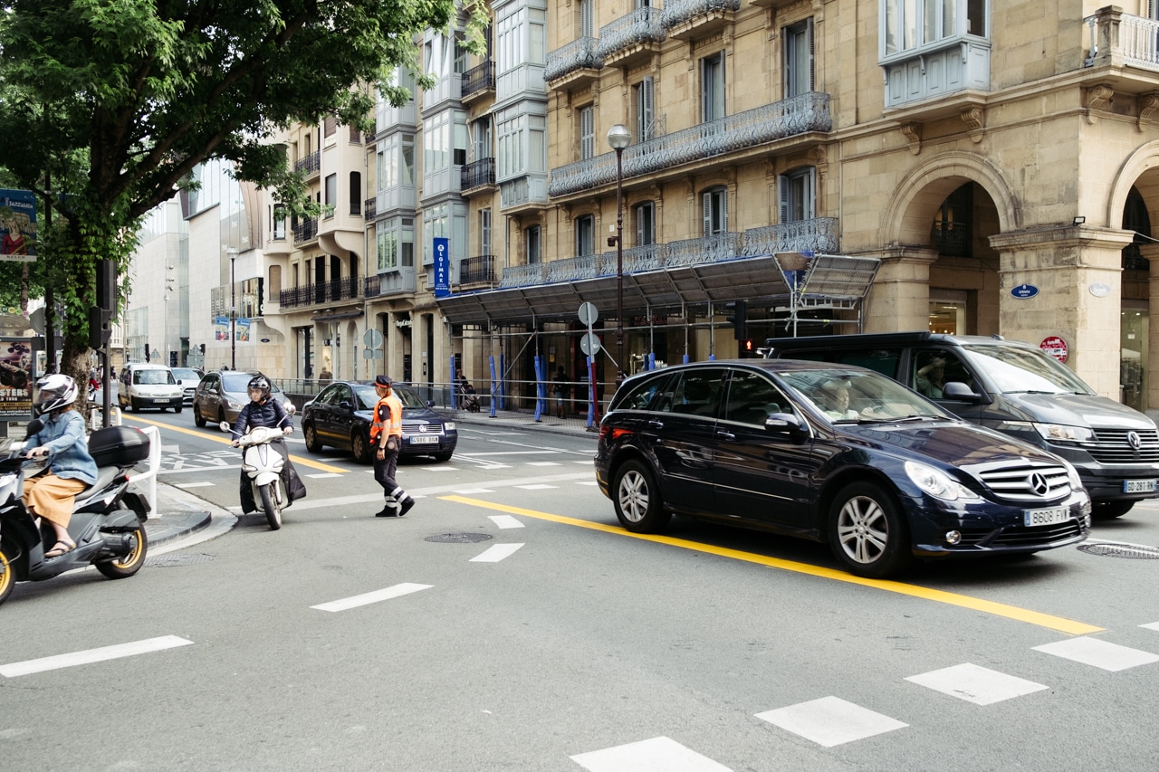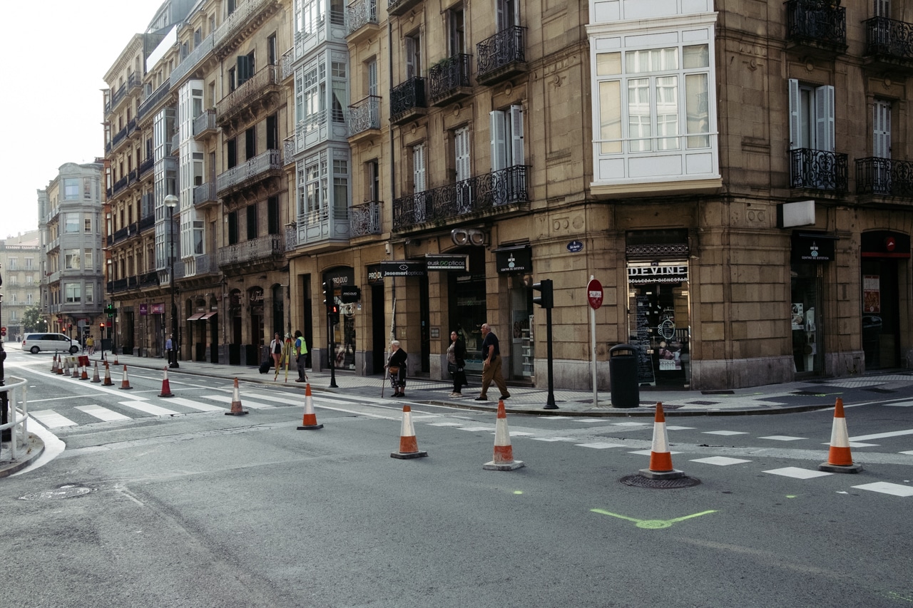 Los vehículos privados no pueden circular en la c/San Martín, en la manzana existente entre las calles Urbieta y Easo. Por el carril que se mantiene abierto podrán circular los autobuses, motos y las bicicletas (solo dirección oeste, en el sentido de circulación).