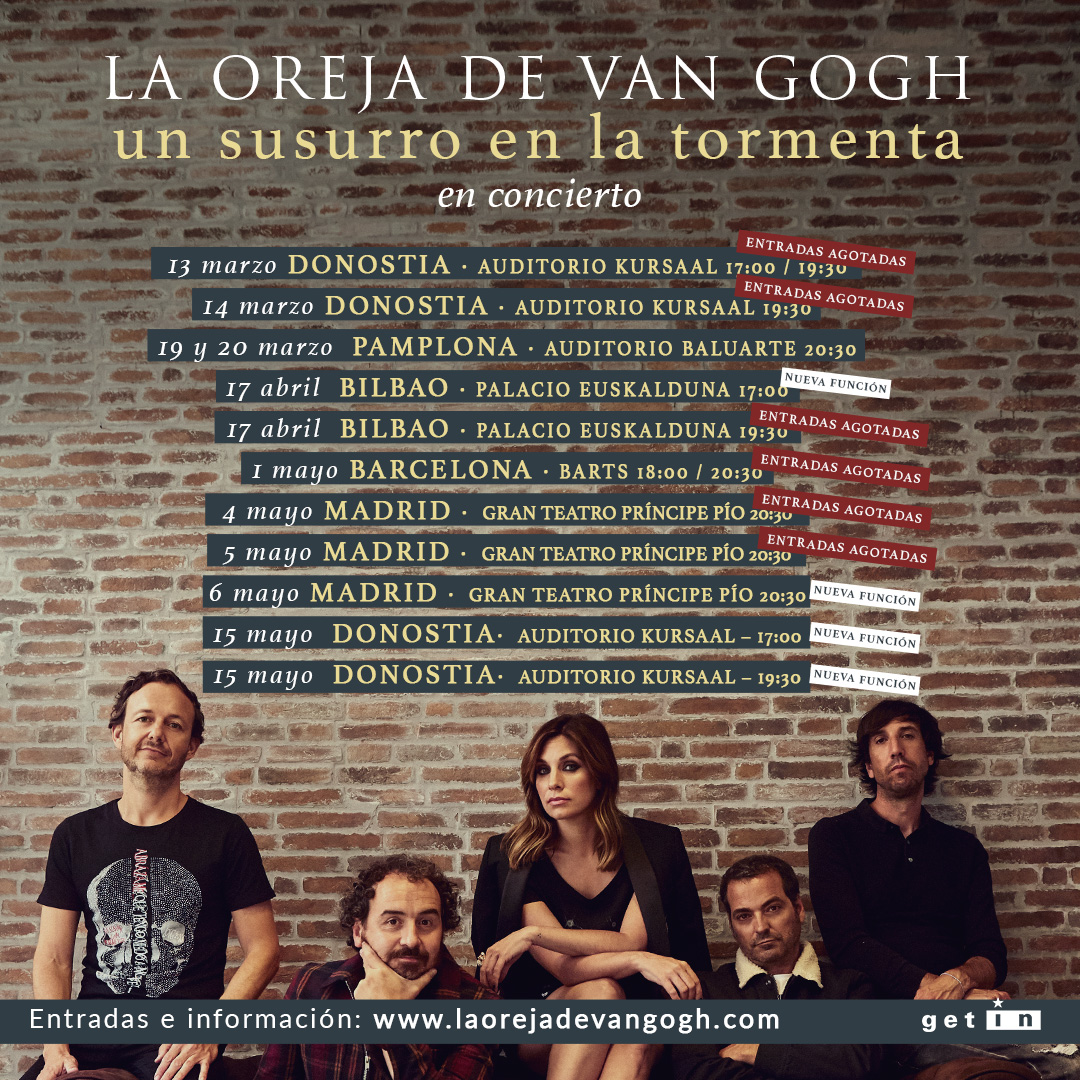 «Se acaban de añadir nuevas fechas y funciones, mirad», advierte el grupo donostiarra La Oreja de Van Gogh en las redes. Y es que desde que comenzaron a anunciar las fechas de la gira las entradas se acaban como un suspiro para disfrutar en directo de ‘Un susurro en la tormenta’.