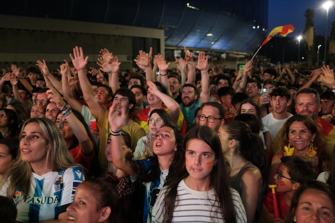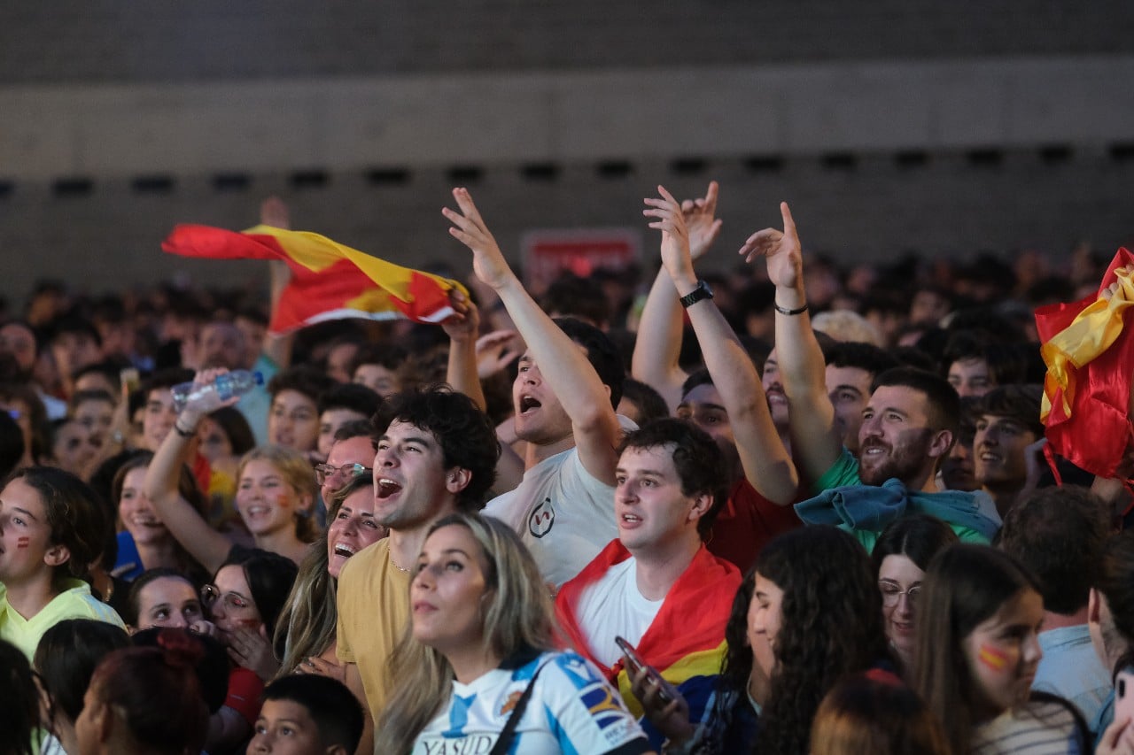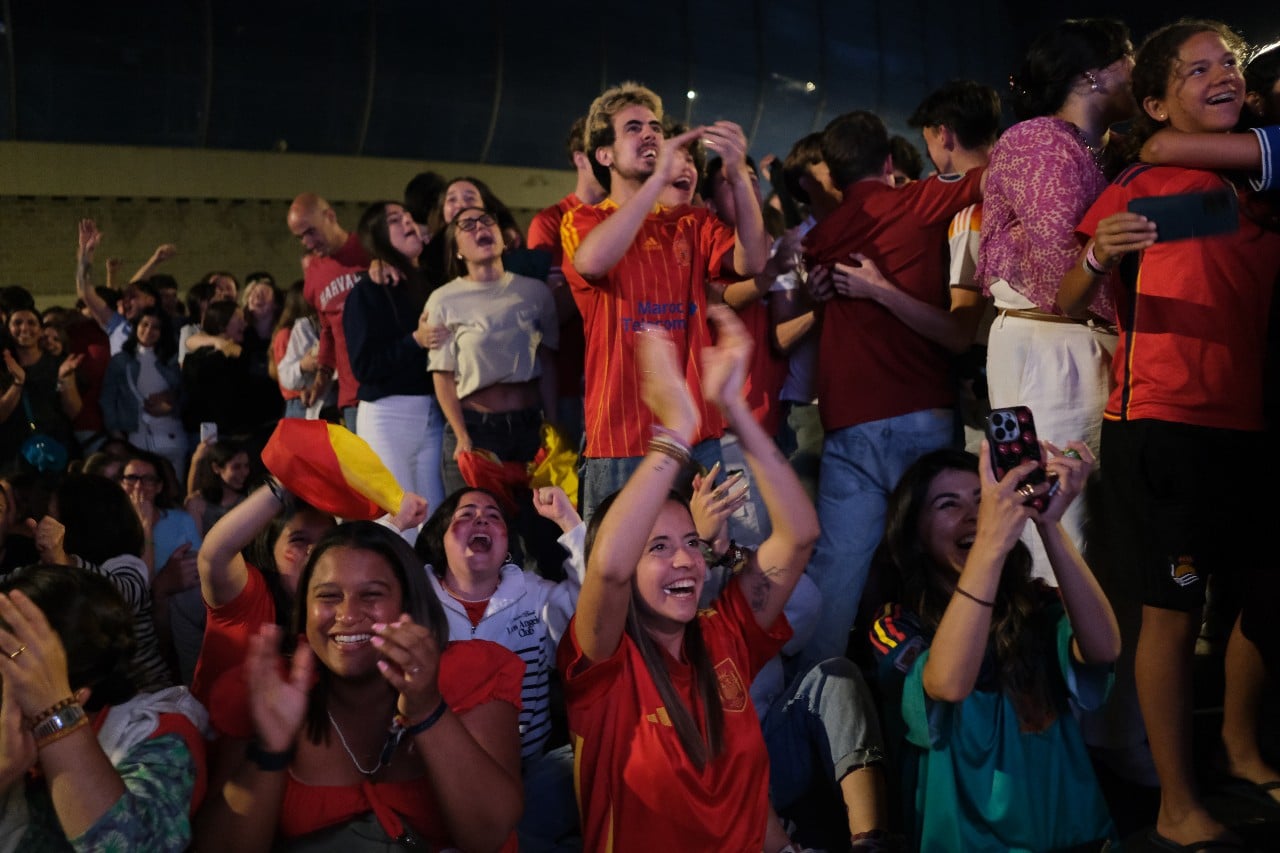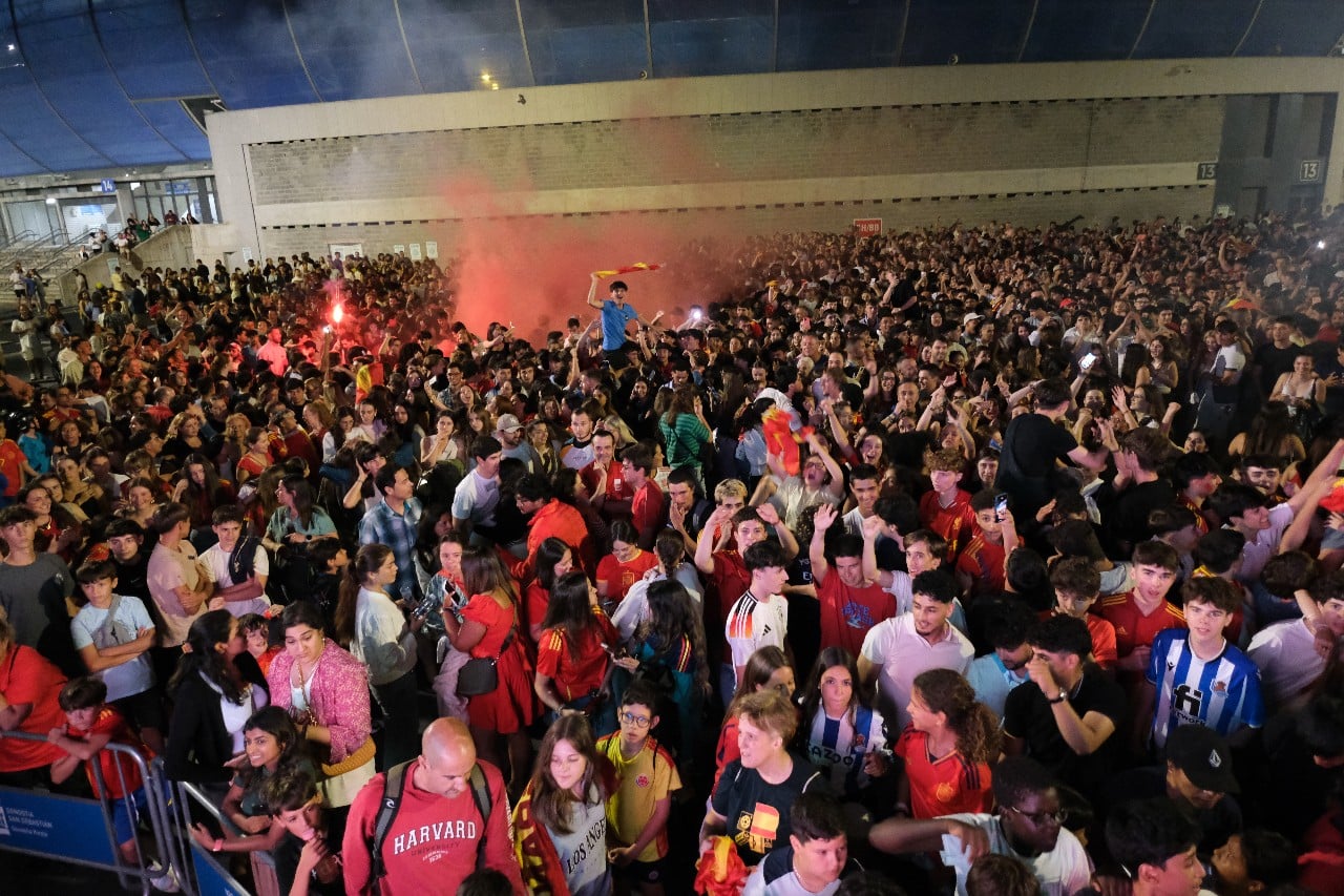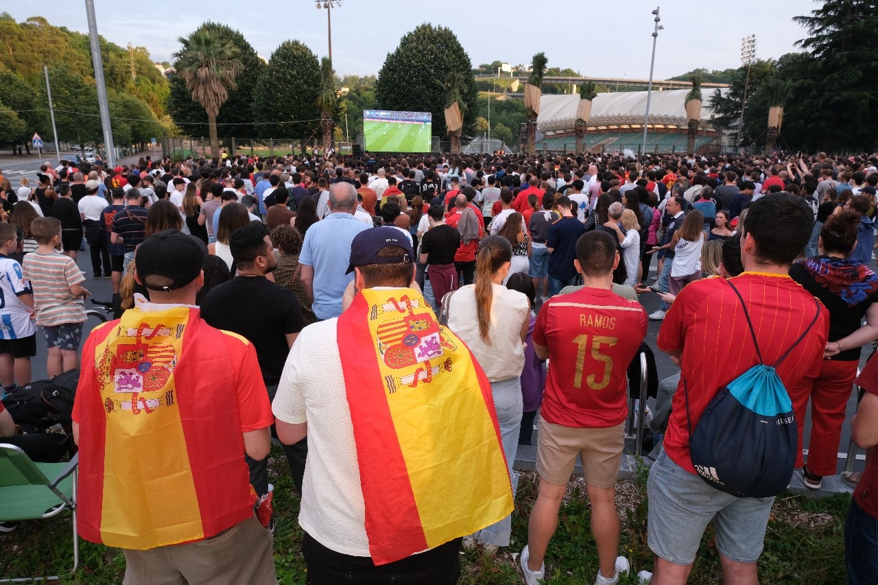 No era tan «gigante» como se decía, pero eso ha sido lo de menos y la final de la Eurocopa España-Inglaterra ha congregado a numerosos donostiarras frente a la pantalla que Donostia Kirola ha instalado en Anoeta para la multitud que ha querido disfrutar del espectáculo deportivo con mucha compañía. Un DJ fue el encargado de amenizar la espera y de generar el buen ambiente que ha ido creciendo hasta el subidón del gol de Nico Williams y la locura, cómo no, del tanto de la victoria del txuriurdin Mikel Oyarzabal.