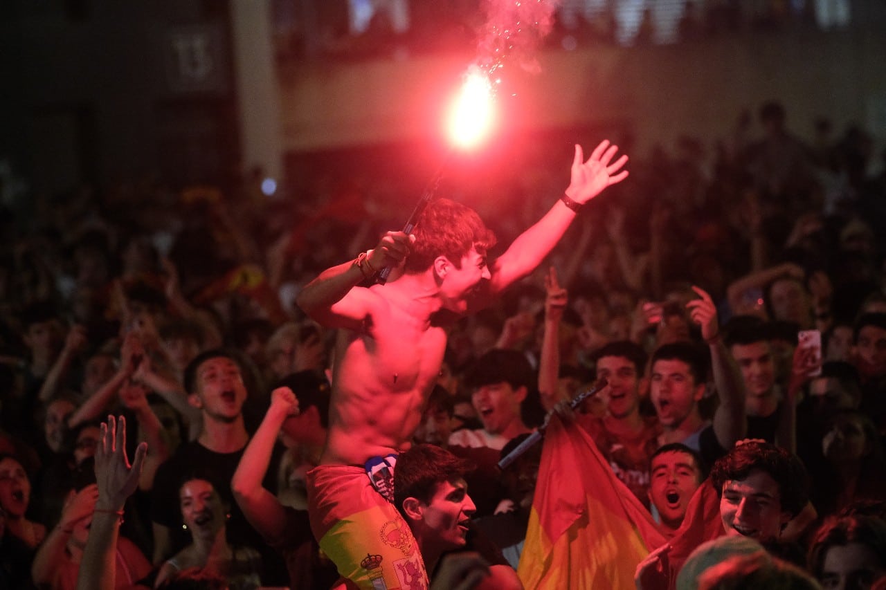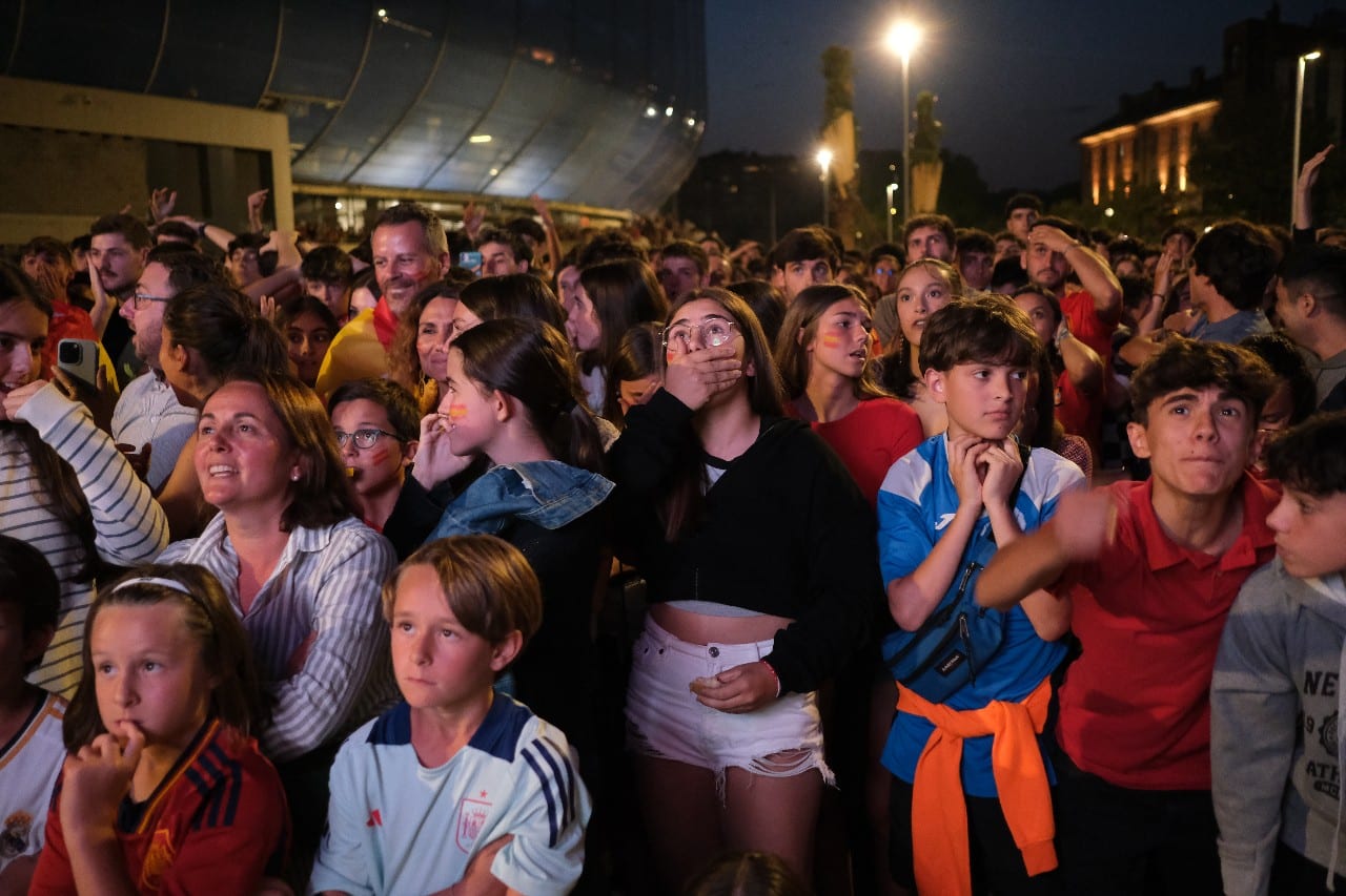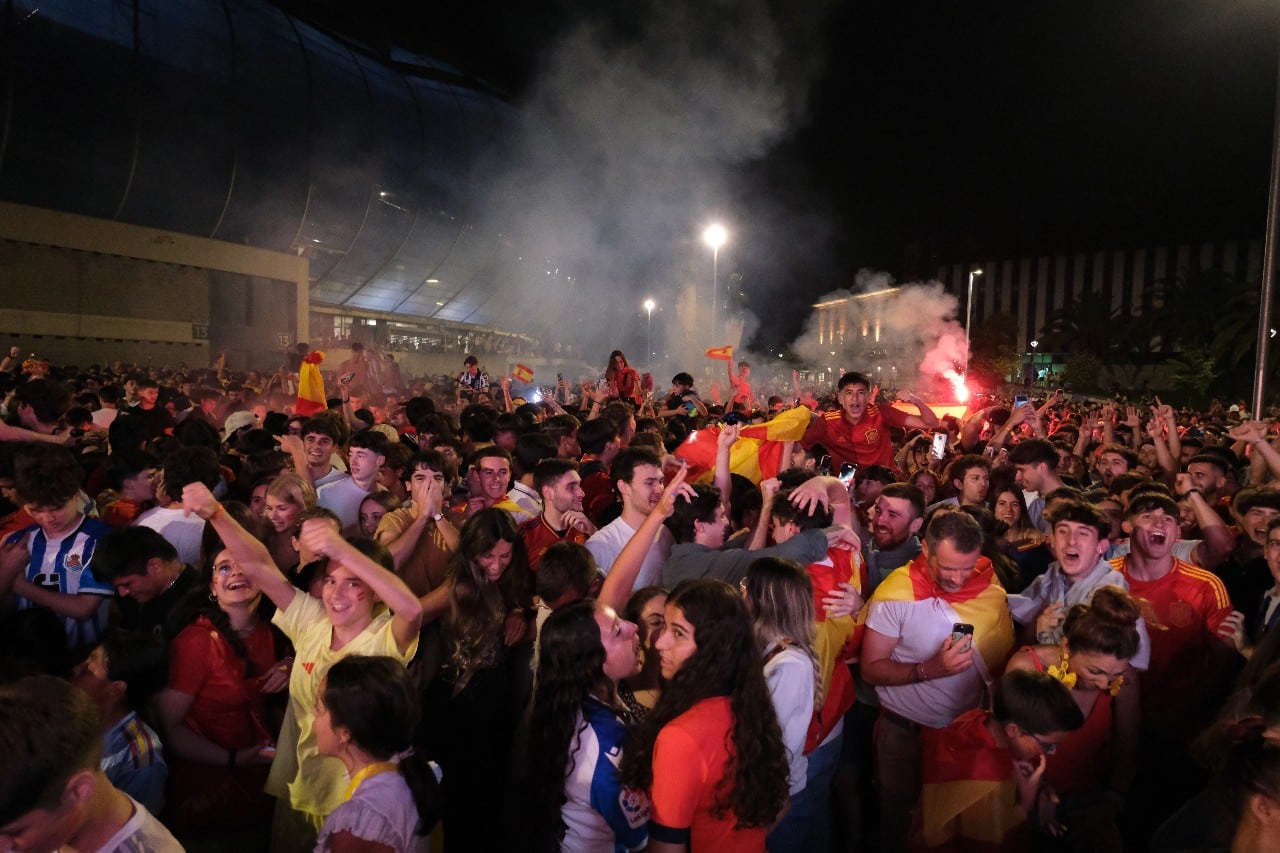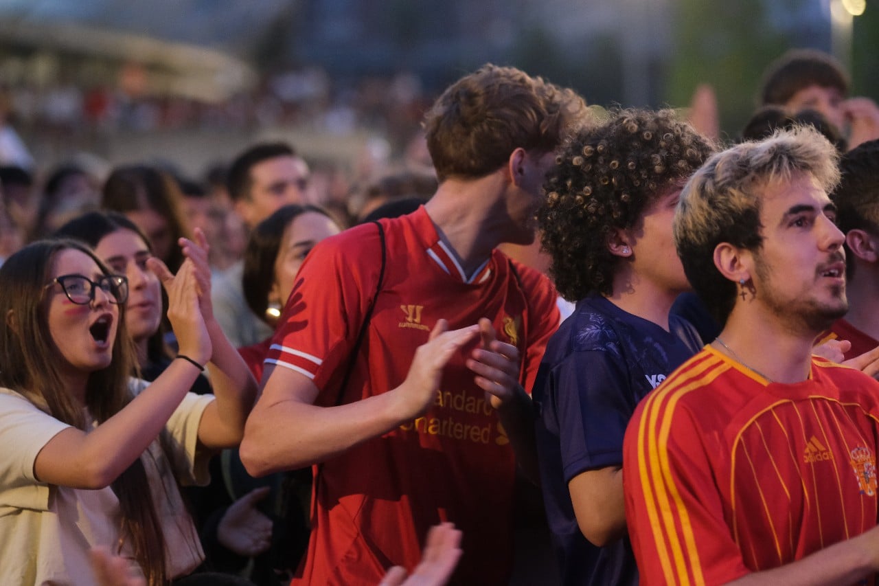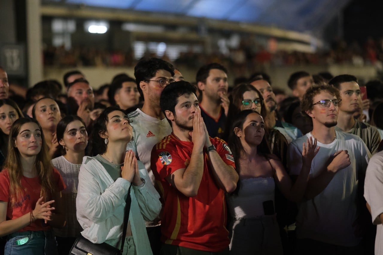No era tan «gigante» como se decía, pero eso ha sido lo de menos y la final de la Eurocopa España-Inglaterra ha congregado a numerosos donostiarras frente a la pantalla que Donostia Kirola ha instalado en Anoeta para la multitud que ha querido disfrutar del espectáculo deportivo con mucha compañía. Un DJ fue el encargado de amenizar la espera y de generar el buen ambiente que ha ido creciendo hasta el subidón del gol de Nico Williams y la locura, cómo no, del tanto de la victoria del txuriurdin Mikel Oyarzabal.
