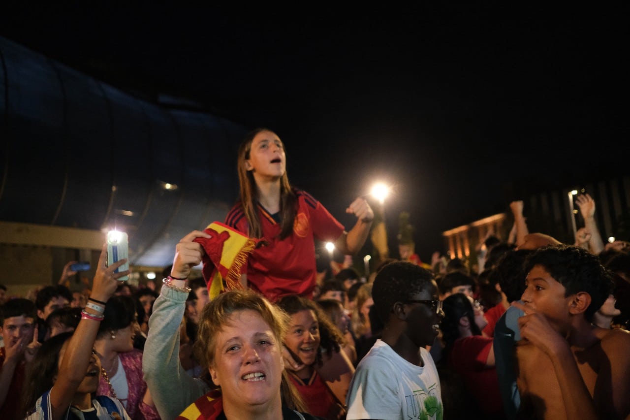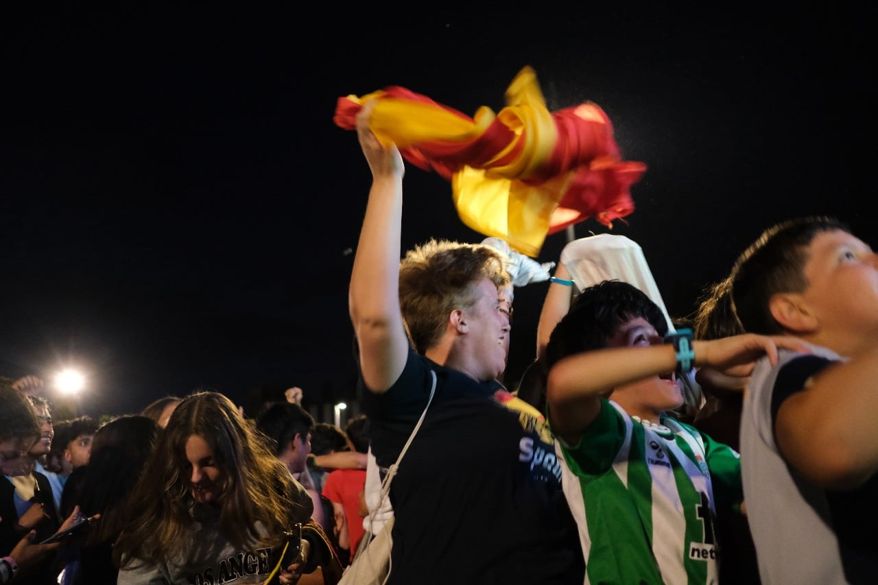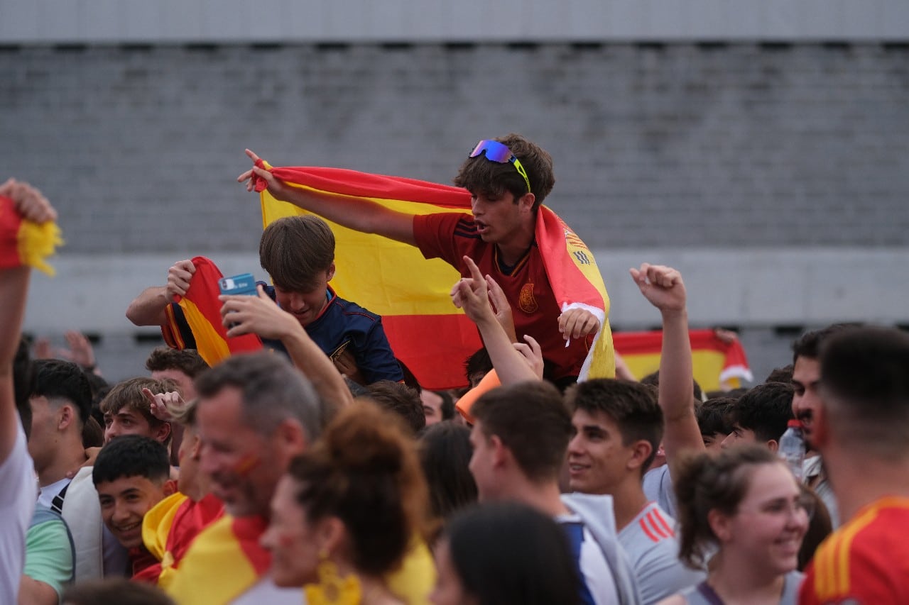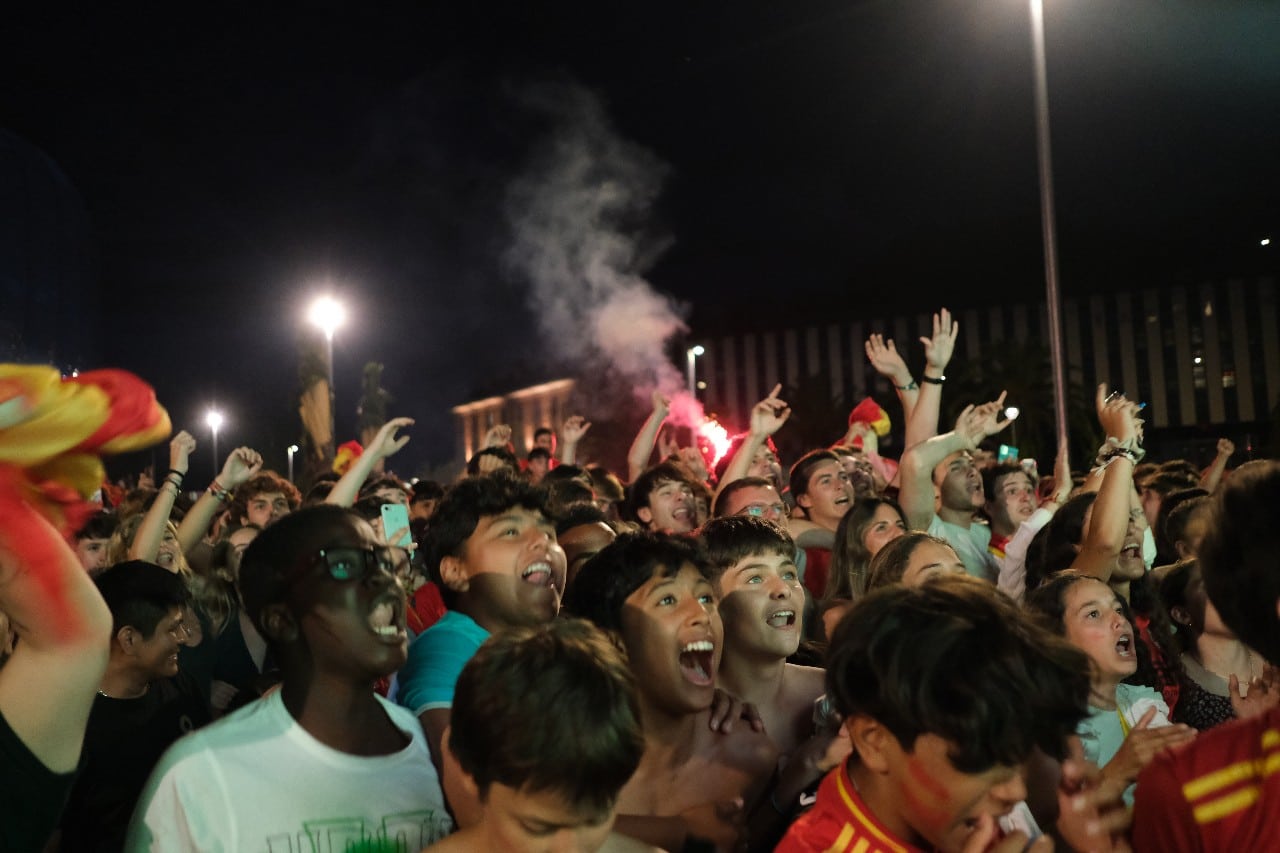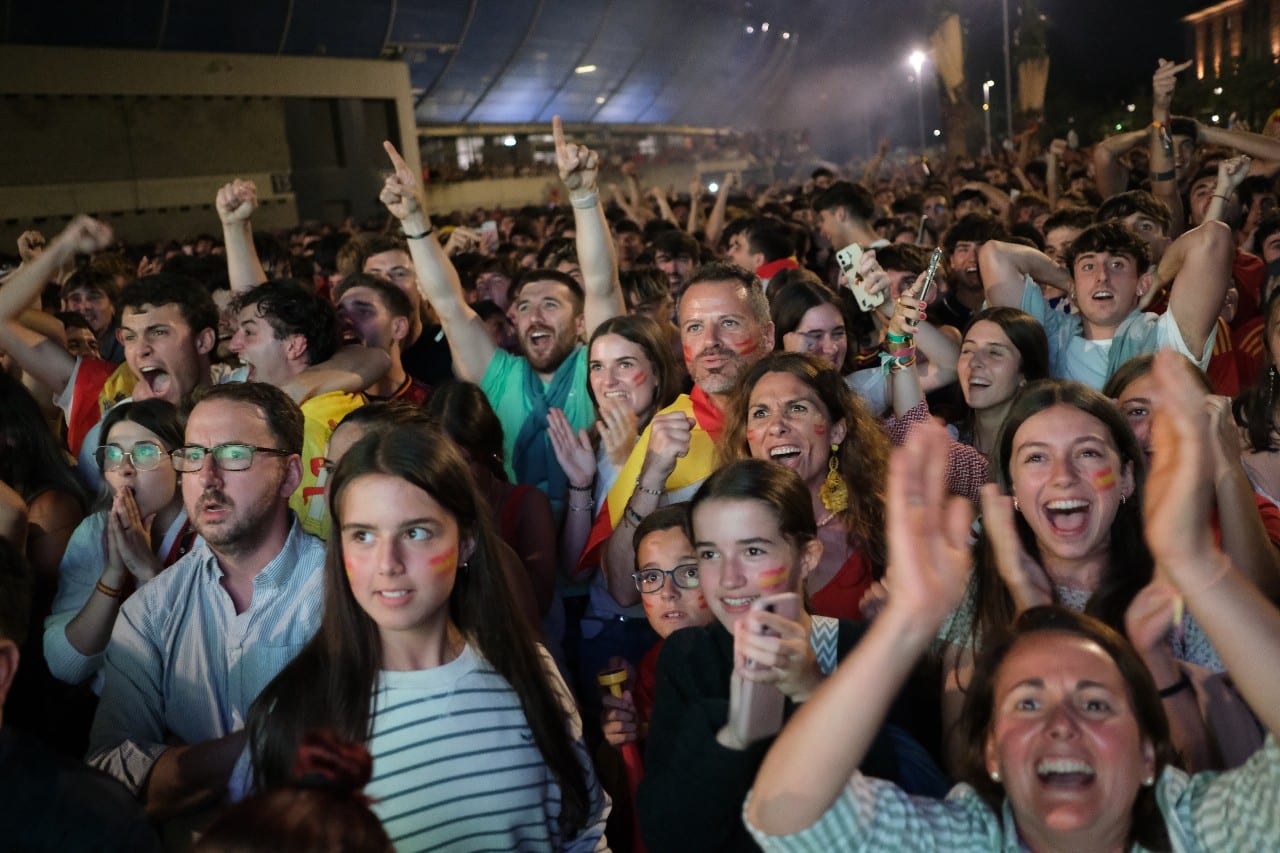No era tan «gigante» como se decía, pero eso ha sido lo de menos y la final de la Eurocopa España-Inglaterra ha congregado a numerosos donostiarras frente a la pantalla que Donostia Kirola ha instalado en Anoeta para la multitud que ha querido disfrutar del espectáculo deportivo con mucha compañía. Un DJ fue el encargado de amenizar la espera y de generar el buen ambiente que ha ido creciendo hasta el subidón del gol de Nico Williams y la locura, cómo no, del tanto de la victoria del txuriurdin Mikel Oyarzabal.