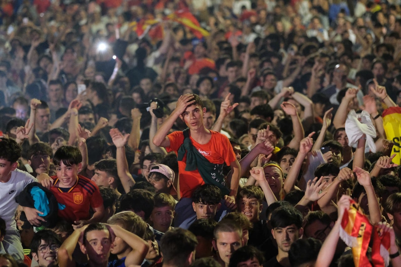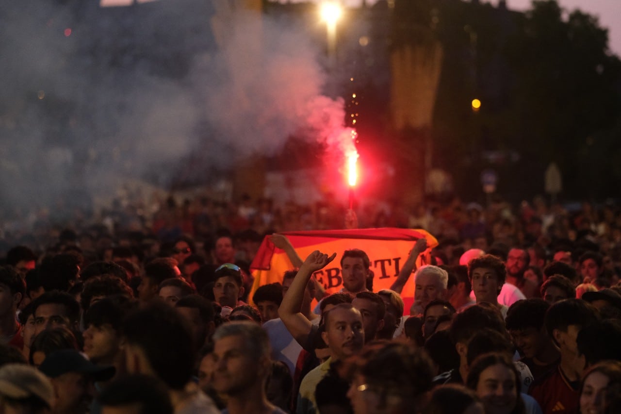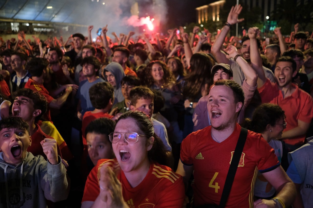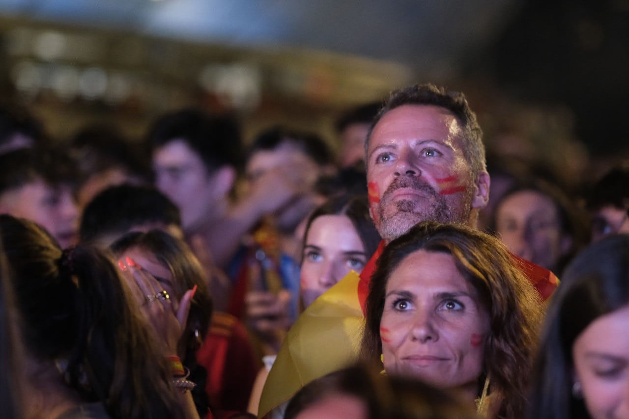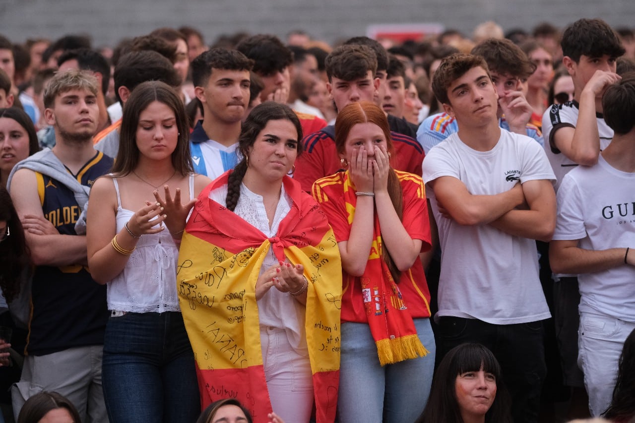 No era tan «gigante» como se decía, pero eso ha sido lo de menos y la final de la Eurocopa España-Inglaterra ha congregado a numerosos donostiarras frente a la pantalla que Donostia Kirola ha instalado en Anoeta para la multitud que ha querido disfrutar del espectáculo deportivo con mucha compañía. Un DJ fue el encargado de amenizar la espera y de generar el buen ambiente que ha ido creciendo hasta el subidón del gol de Nico Williams y la locura, cómo no, del tanto de la victoria del txuriurdin Mikel Oyarzabal.