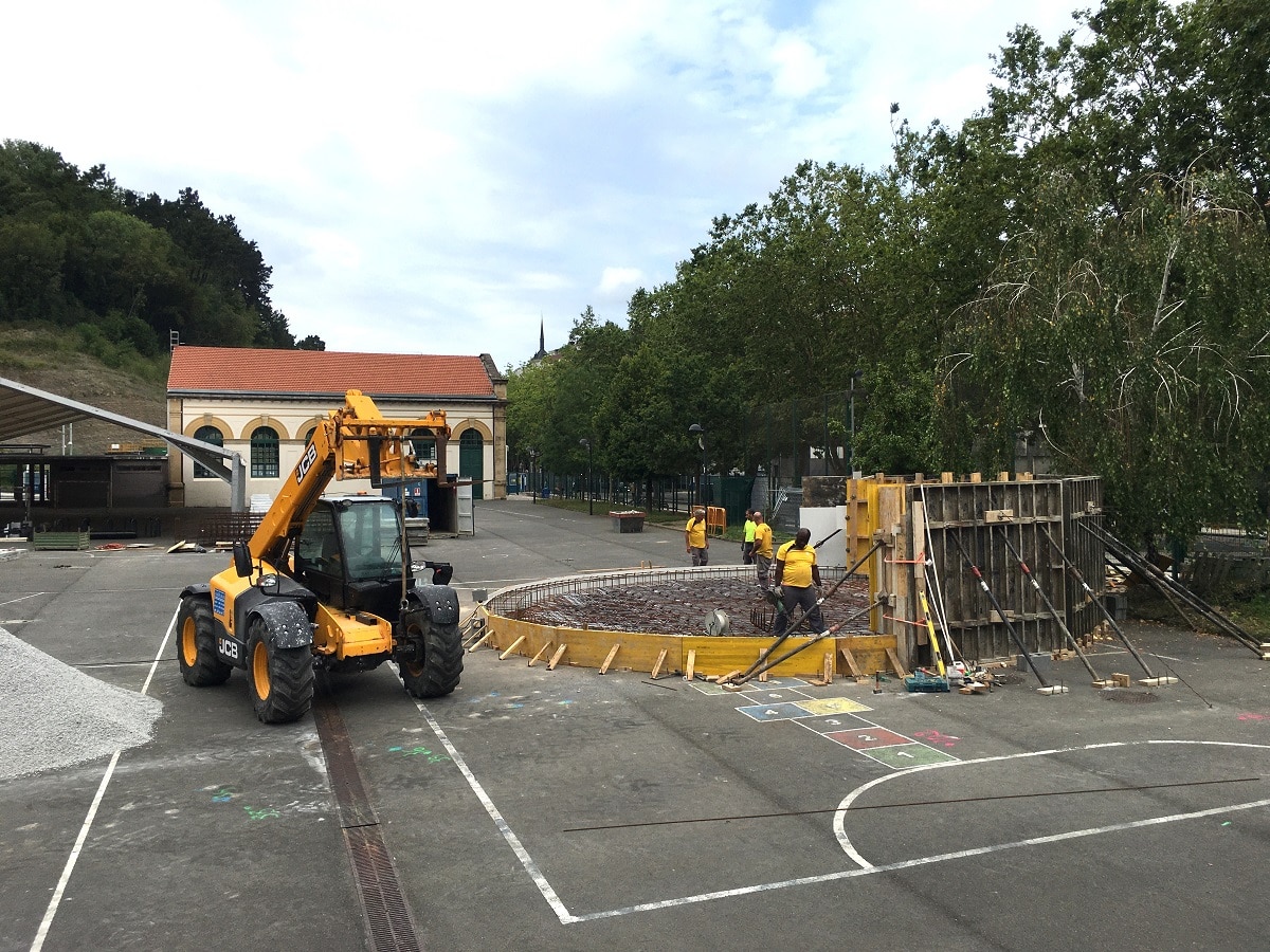Otra de las obras que se están acometiendo este verano es la cubierta del patio de la Ikastola de Intxaurrondo con un presupuesto de 288.343 euros. La cubierta se construye en el extremo noroeste del patio de la ikastola, ubicada en el Paseo de Zarategi. Es una cubierta ligera de 4 metros en su parte más baja y de 4,8 metros en la parte alta, un desnivel que prevé una correcta evacuación del agua de lluvia. Es un rectángulo de 27,5 metros de longitud y 16,5 de anchura.