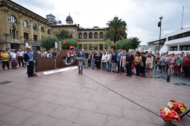 Por su parte el consejero de Medio Ambiente, Planificación Territorial y Vivienda, el socialista Iñaki Arriola, ha calificado de «necesario” el acto que, con motivo del Día de la Memoria Histórica de San Sebastián, ha tenido lugar este mediodía en la escultura Dual, frente al Ayuntamiento. Para Arriola “con este homenaje se reconoce una realidad que para mucha gente parece lejana pero que forma parte de nuestra historia».