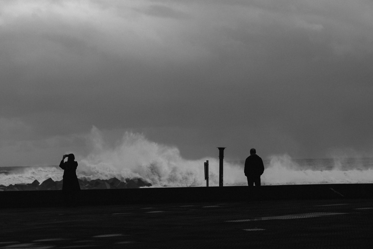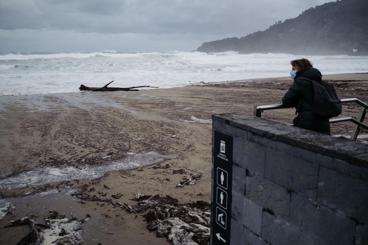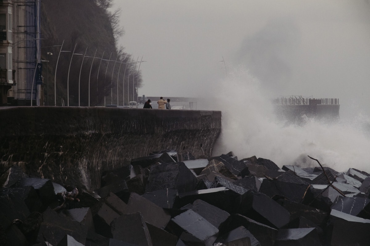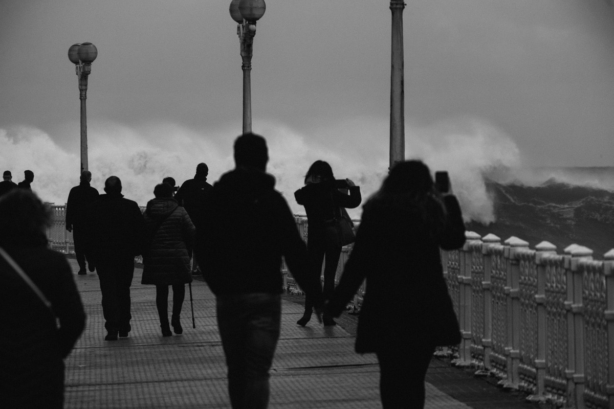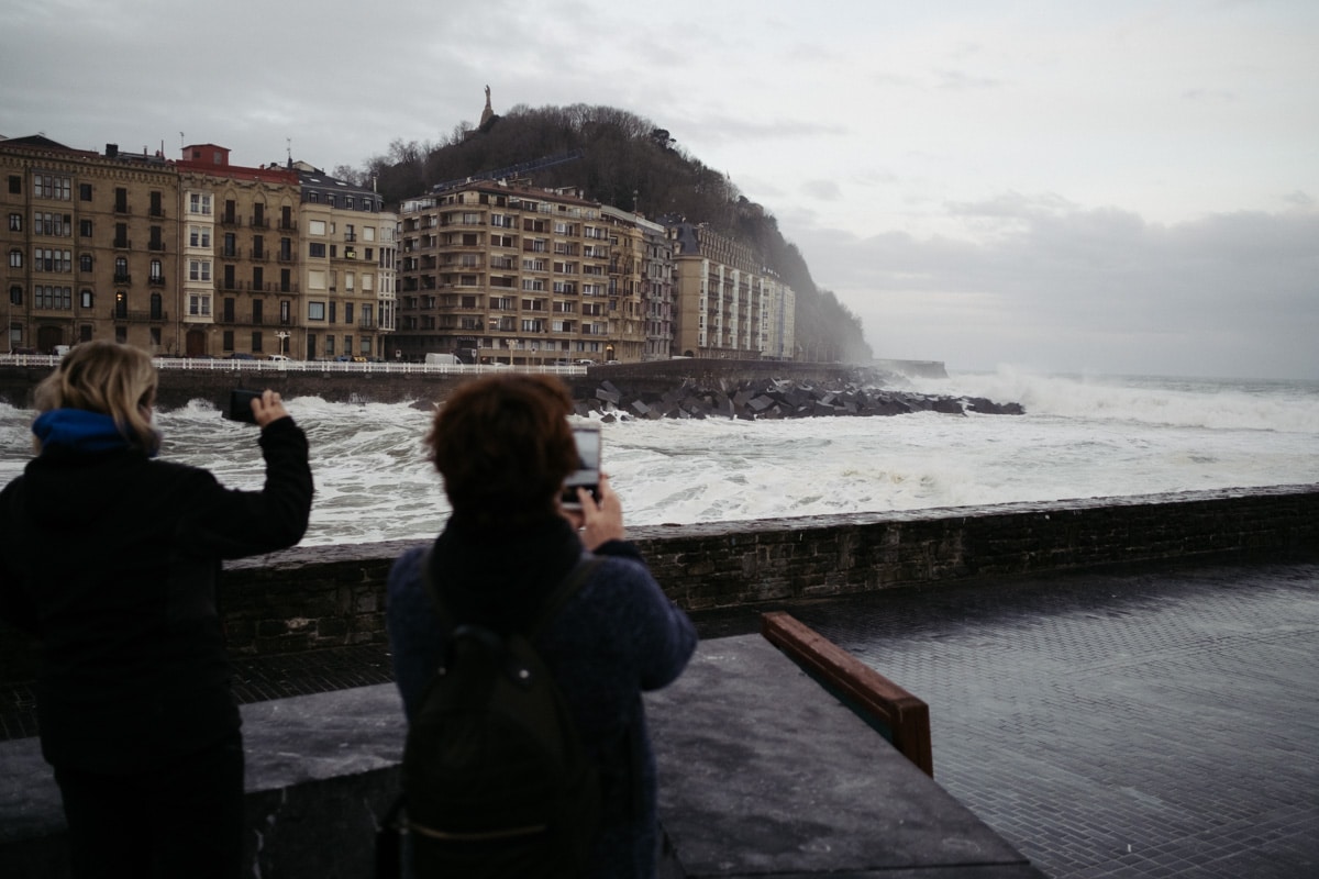 Imagen de archivo. Viandantes observando las olas en Donostia. Fotos: Santiago Farizano