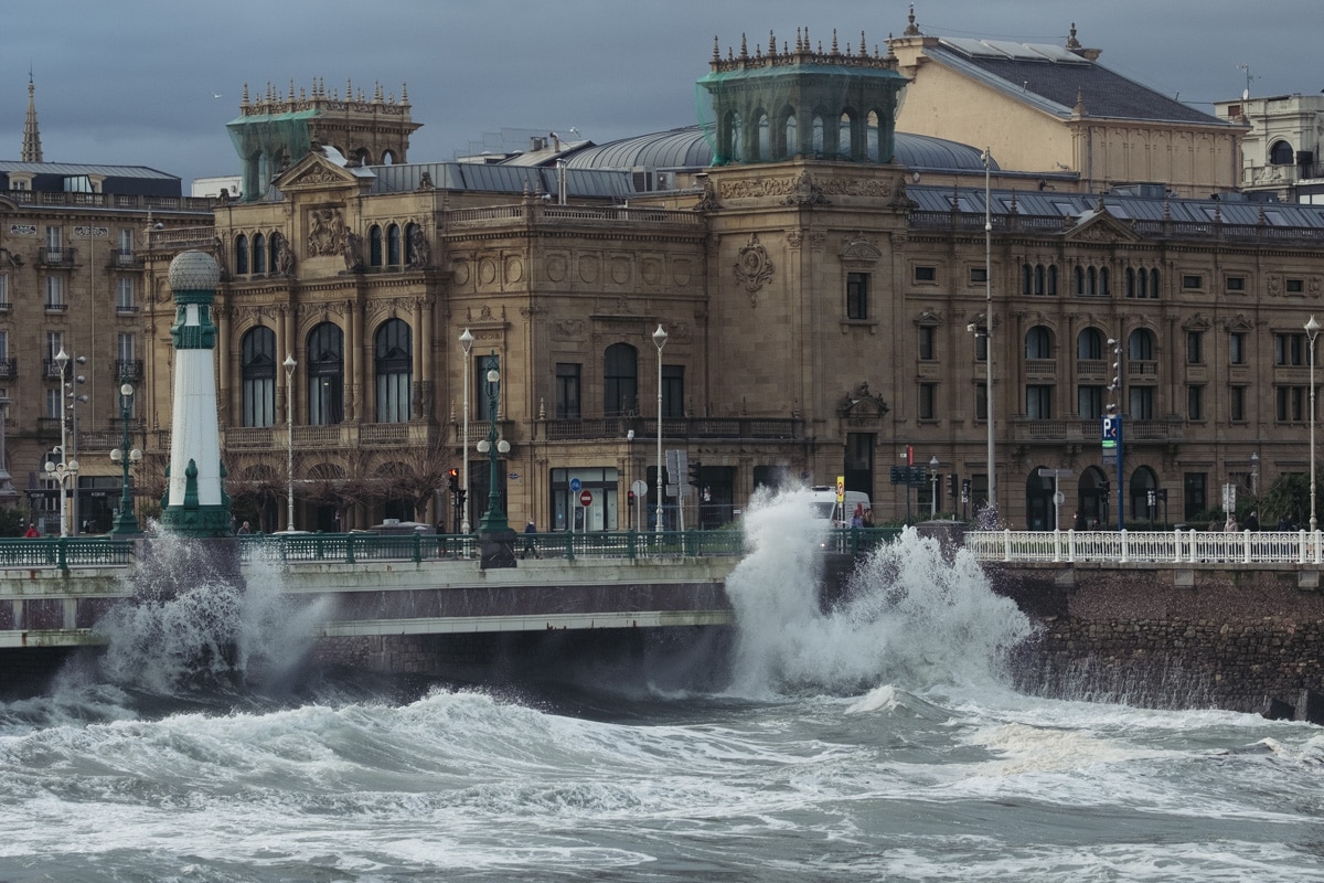 Las olas dejarán un bonito espectáculo este fin de semana en Donostia como ya se ha podido comprobar a primera hora de la mañana. En Donostia el Paseo Nuevo permanece cerrado para los vehículos y los peatones y también los accesos al Peine del Viento y al Paseo Leizaola (espigón de Zurriola). Esta medida de precaución se mantendrá durante todo el sábado y todo el domingo.