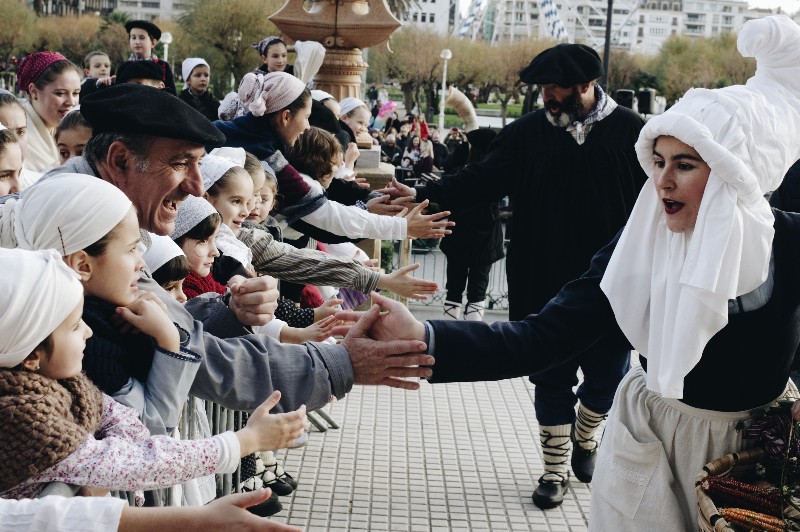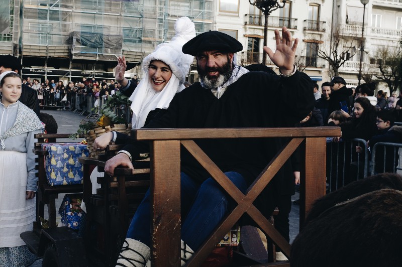 Olentzero y Mari Domingi ya han llegado a Donostia, donde miles de niños les esperan y esperan también, cómo no, los regalos que la pareja ha anunciado que trae.