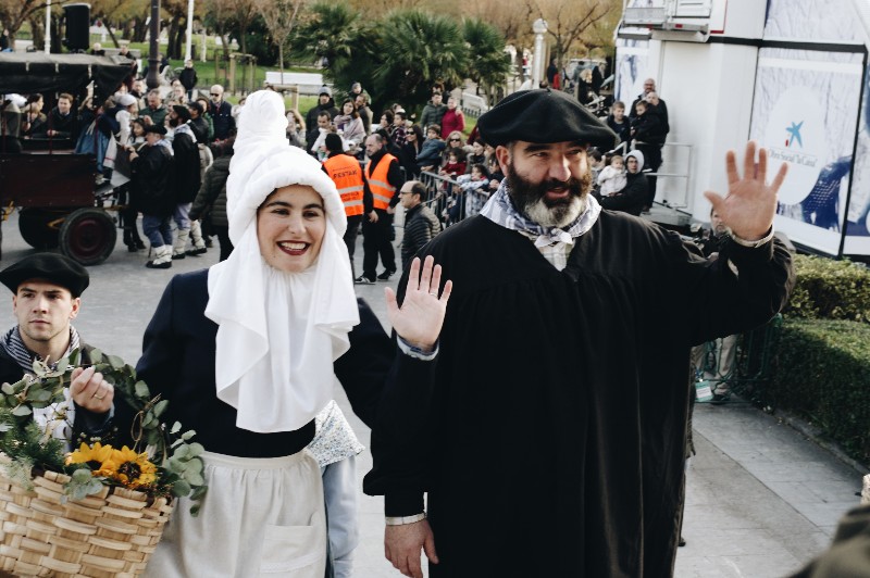 Olentzero y Mari Domingi ya han llegado a Donostia, donde miles de niños les esperan y esperan también, cómo no, los regalos que la pareja ha anunciado que trae. En este momento el Olentzero recoge cartas en el Ayuntamiento y después comenzará el desfile por la ciudad.
