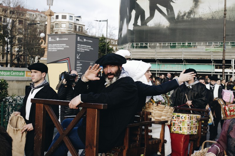En este momento el Olentzero recoge cartas en el Ayuntamiento y después comenzará el desfile por la ciudad.