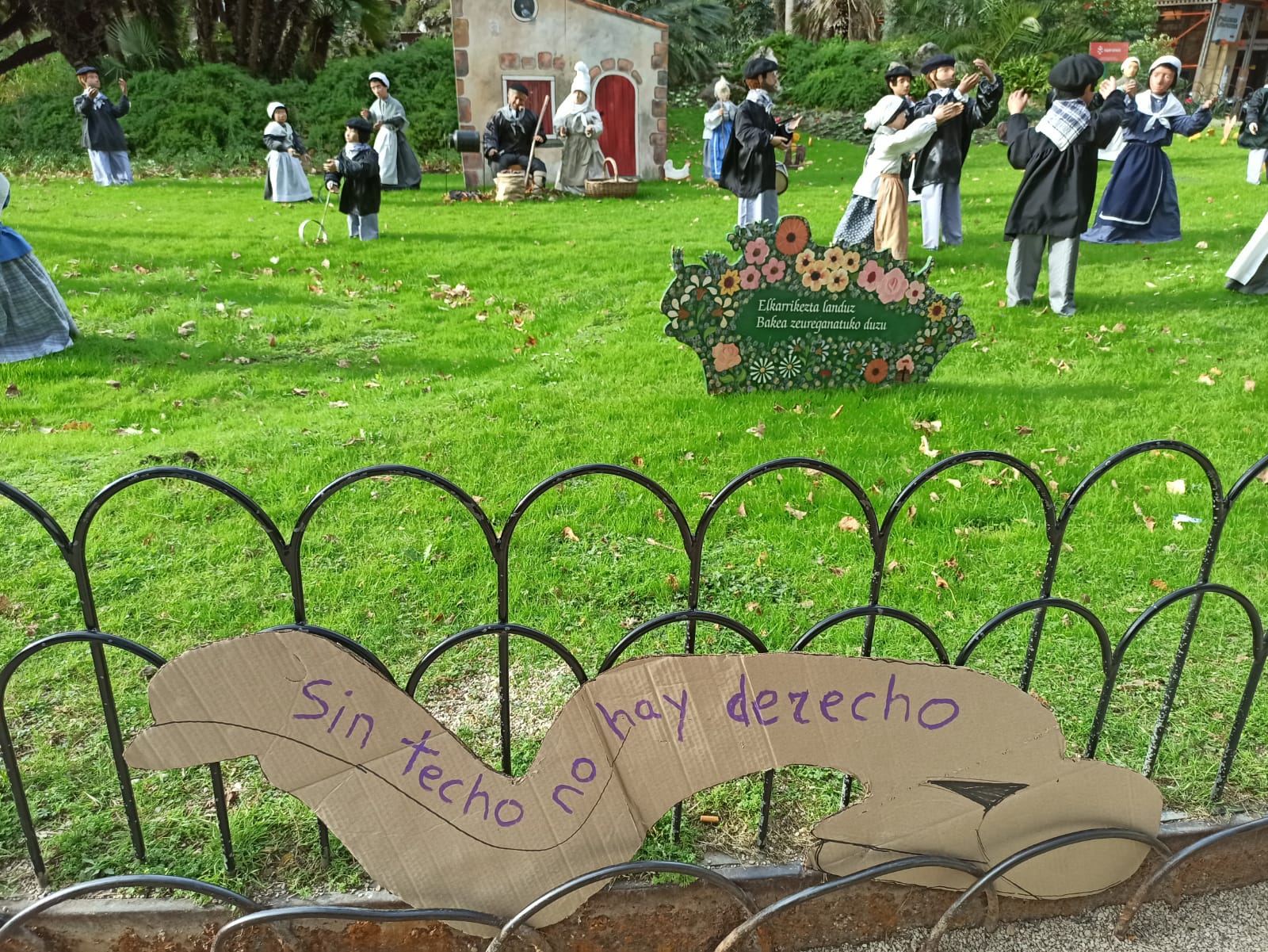 En el manifiesto leído se ha escuchado lo siguiente: «¿Qué es una vida digna? Una vida digna es comer caliente. Una vida digna es tener techo. Hay que facilitar viviendas, parar desahucios y regular el mercado de alquiler. En Euskadi hay más de 90.000 viviendas vacías. Una vida digna es recibir atención sanitaria. Si no tienes padrón no tienes derecho a asistencia sanitaria universal. Una vida digna es que no se discrimine por el color de la piel. Todas las personas somos iguales en dignidad y derechos. Una vida digna es recibir educación y poder formarse.