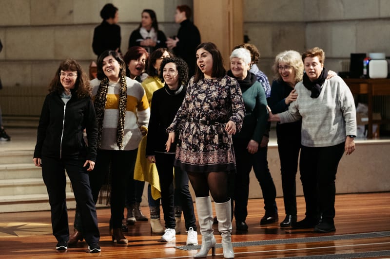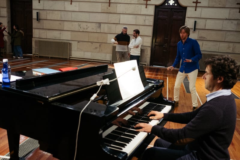 Corto en duración pero «muy interesante» es también el papel del coro Adao, cuyos integrantes se mostraban encantados de empezar a ensayar con el resto. «El coro, en esta ópera, es primero la alegría y la juventud. Luego, la muerte», comentaron antes de empezar. Al frente del mismo está Jagoba Fadrique.