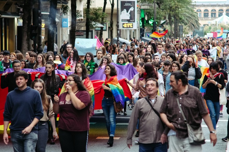 Enorme y colorida como siempre ha sido la Manifestación del Orgullo que ha recorrido esta tarde Donostia con banderas, lemas, música, animación y reivindicaciones de respeto al colectivo LGTBI.
