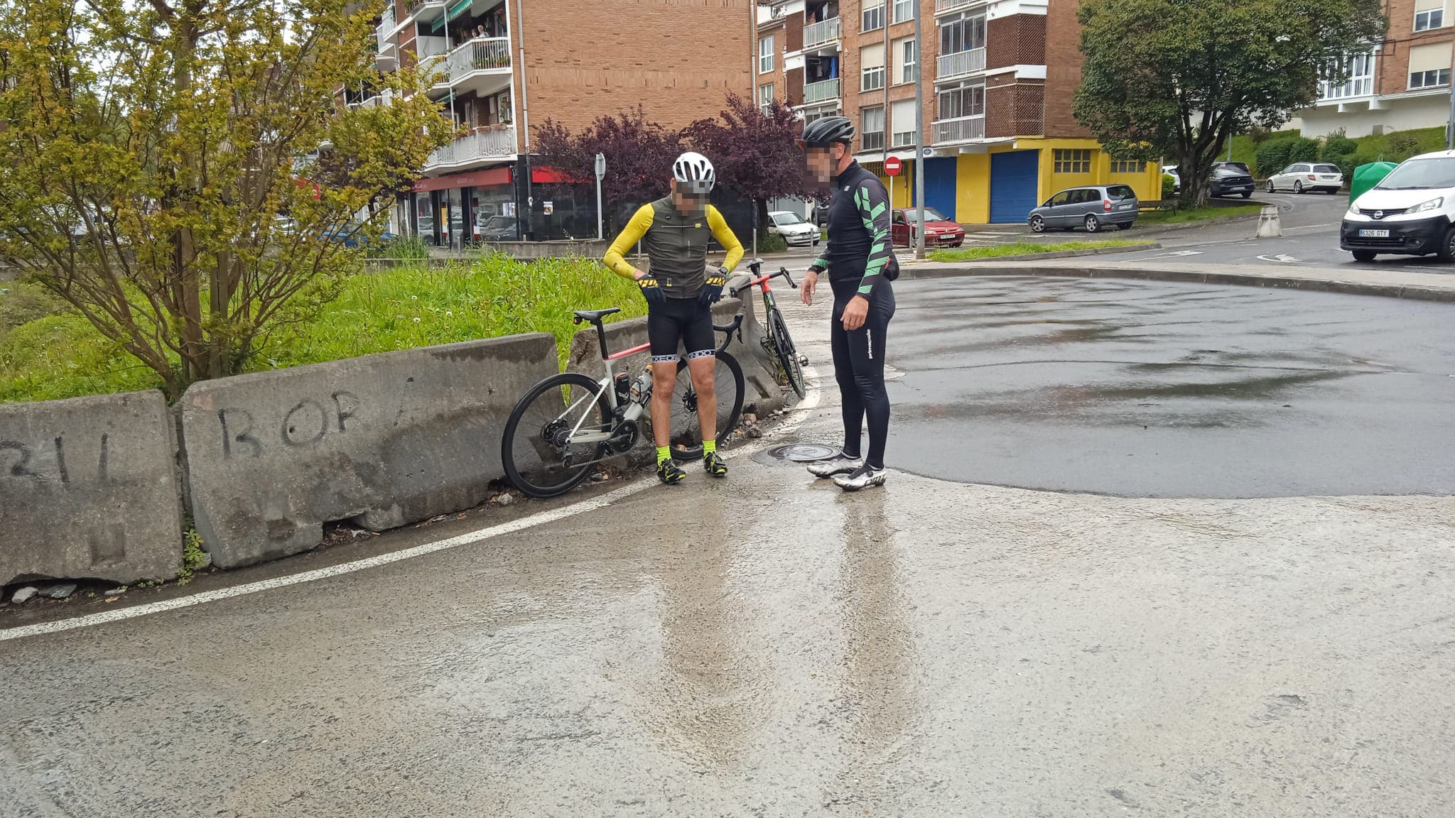 «Otros dos ciclistas que se van al suelo en la rotonda provisional de Martutene»