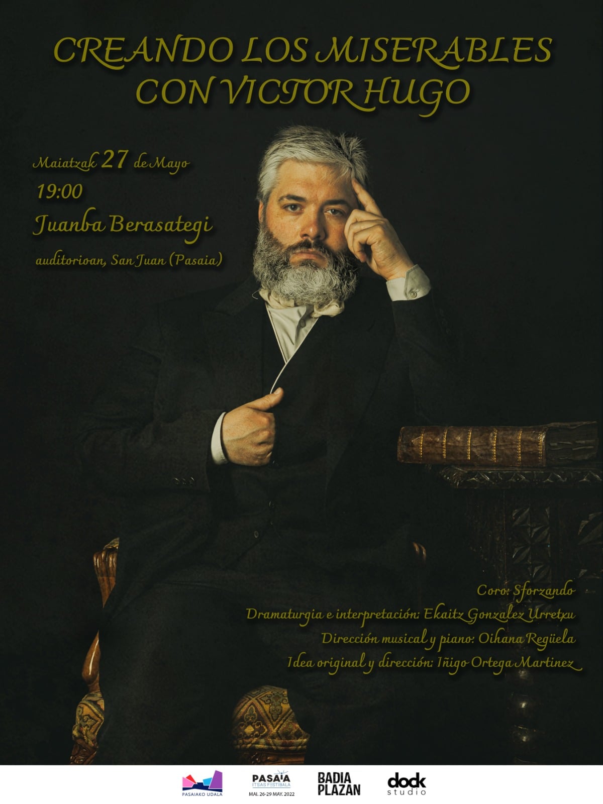 Dentro del marco de Pasaia Itsas Festibala, este viernes 27 de mayo el Auditorio Juanba Berasategi de Pasai Donibane acogerá el estreno del teatro-musical ‘Creando Los miserables con Víctor Hugo’, una adaptación del clásico libro homónimo de Victor Hugo con música de Claude-Michel Schönberg.
