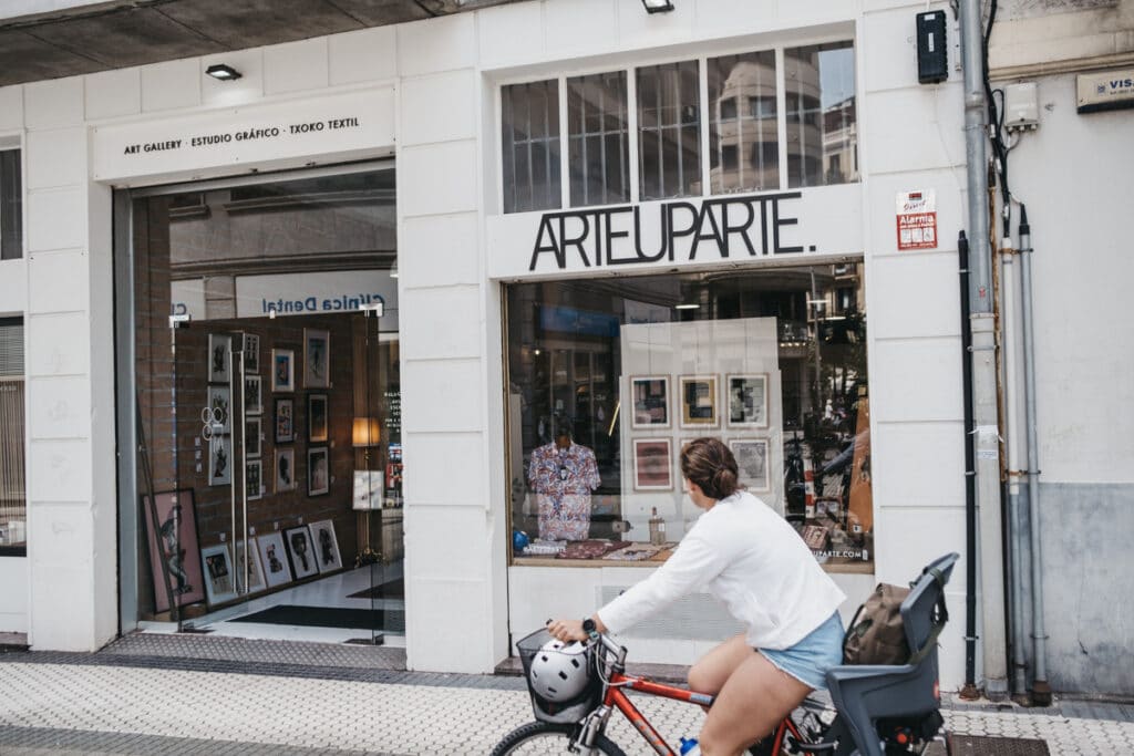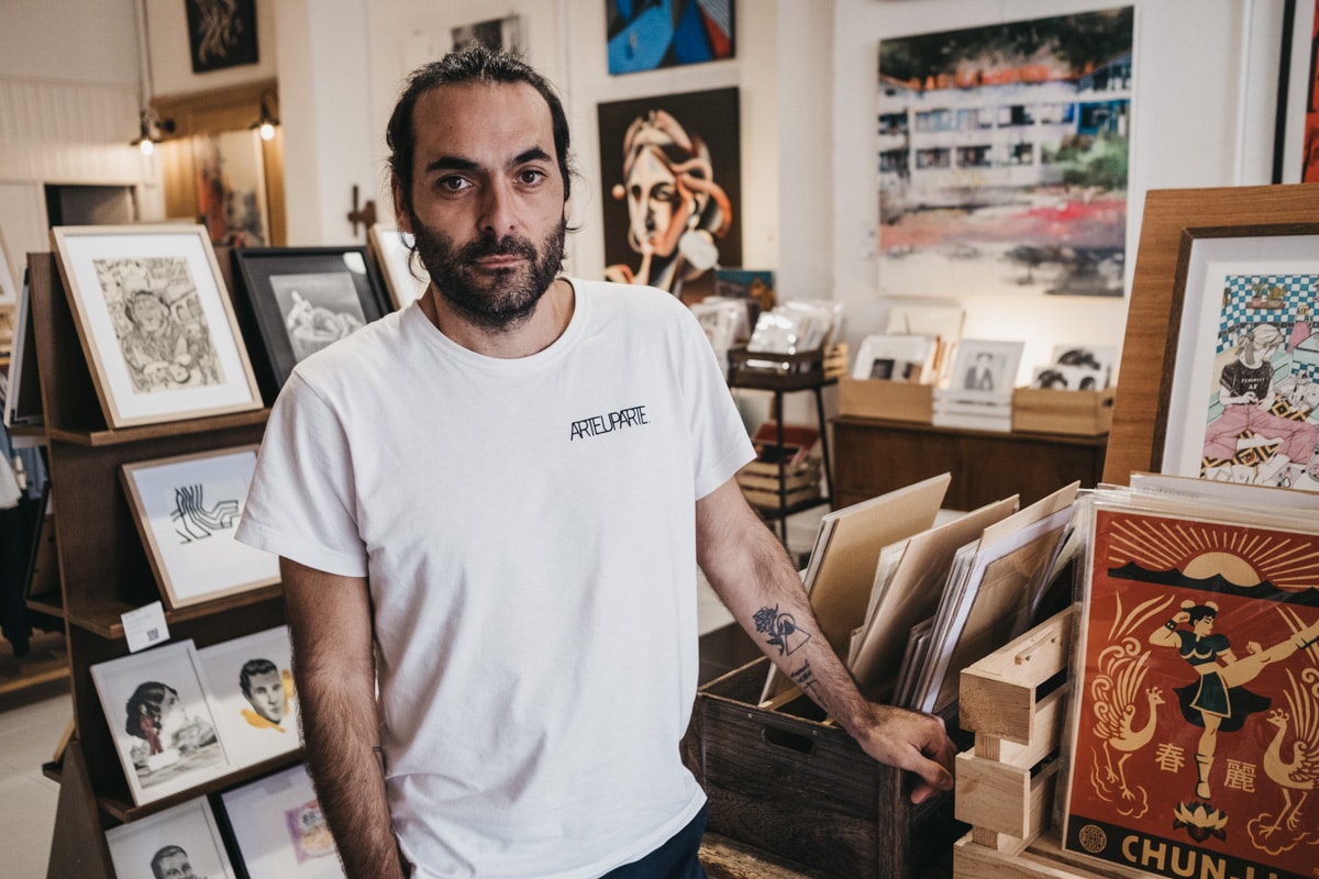 En mayó del año pasado la galería Arteuparte se marchó de Tabakalera deprisa y corriendo. Fue una salida urgente y extraña que tuvo final feliz: hallaron un local espacioso en la calle Nueva del barrio de Gros, donde sus socios, Paul Lataburu e Iñaki Bellido, han encontrado acomodo. Además de piezas de artistas locales y obra gráfica de autores alternativos, en Arteuparte venden ropa sostenible y organizan exposiciones, hay sesiones de djs e incluso montan algún que otro concierto.