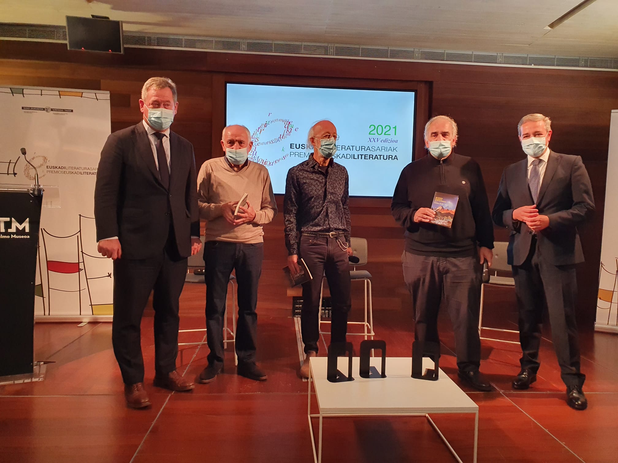 El anuncio de los premiados en la actual edición, los tres guipuzcoanos, lo ha hecho el consejero de Cultura y Política Lingüística. Bingen Zupiria, en una comparecencia en el Museo San Telmo en la que han participado los galardonados, además del viceconsejero de Cultura, Andoni Iturbe.