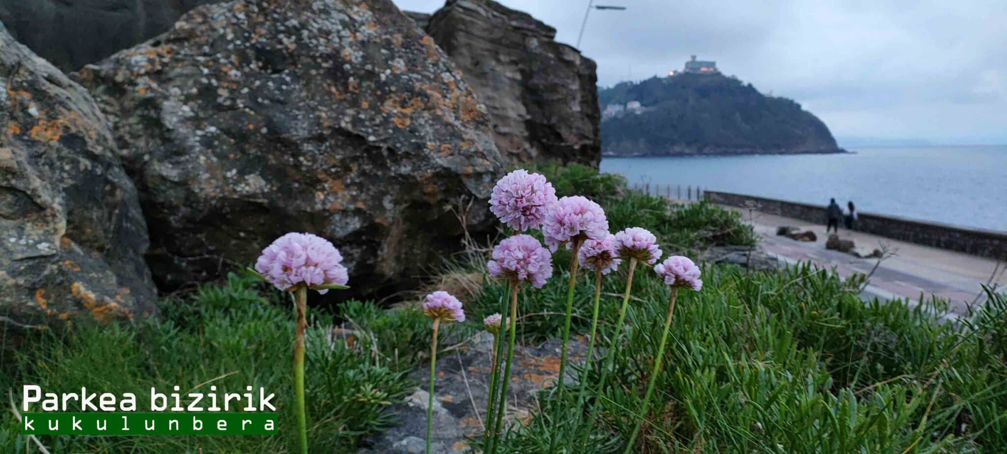 Parkea Bizirik kukulunbera celebra que ha florecido la Armeria en Urgull, en Ulia y en Jaizkibel. También en la Reserva de la Biosfera de Urdaibai, cabo Matxitxako y cabo Villano de Gorliz, entre otros pocos puntos del