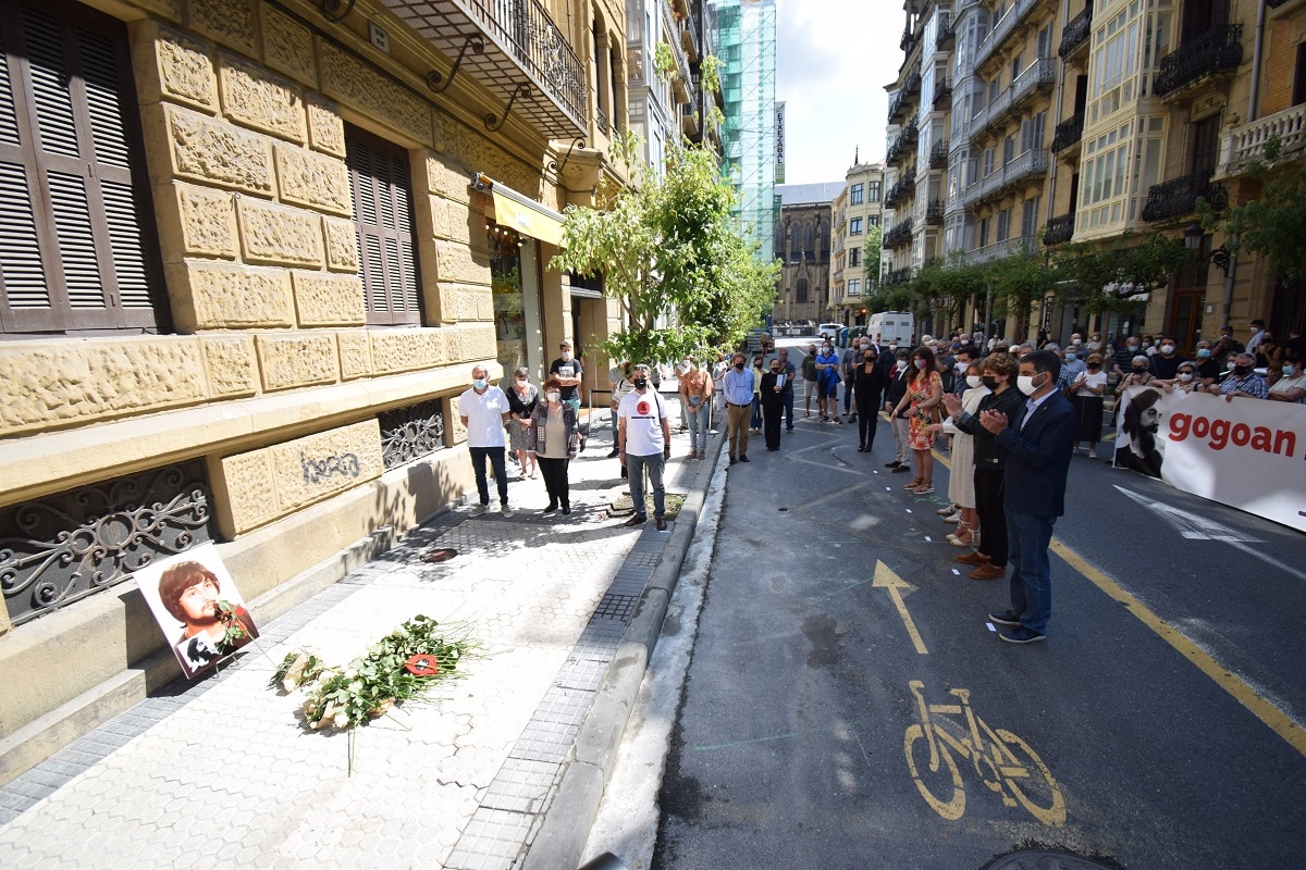 El acto se ha celebrado en el número 12 de la calle San Bartolomé y ha consistido, como en otras ocasiones, en un sencillo homenaje de reconocimiento en el que han participado el alcalde de DonostiaEneko Goia, y representantes de los grupos municipales del Ayuntamiento.