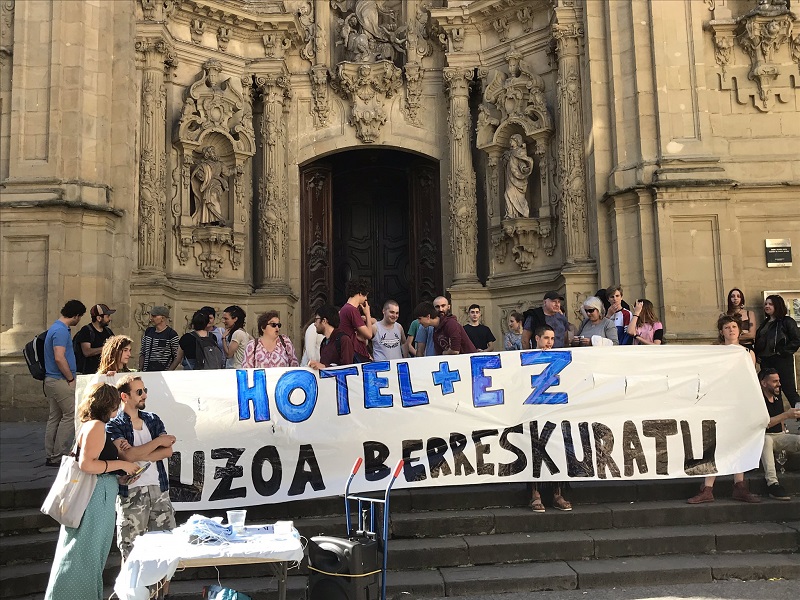 Ambos estuvieron presentes en la manifestación que el pasado 18 de junio aglutinó a cerca de medio centenar de asociaciones, entidades y plataformas vecinales bajo el lema “Por un cambio de modelo, recuperemos la ciudad”. Durante la nutrida marcha, las alusiones al turismo fueron constantes y los manifestantes portaron carteles como “Donostia no está en venta” o “Más cines, menos hoteles”.