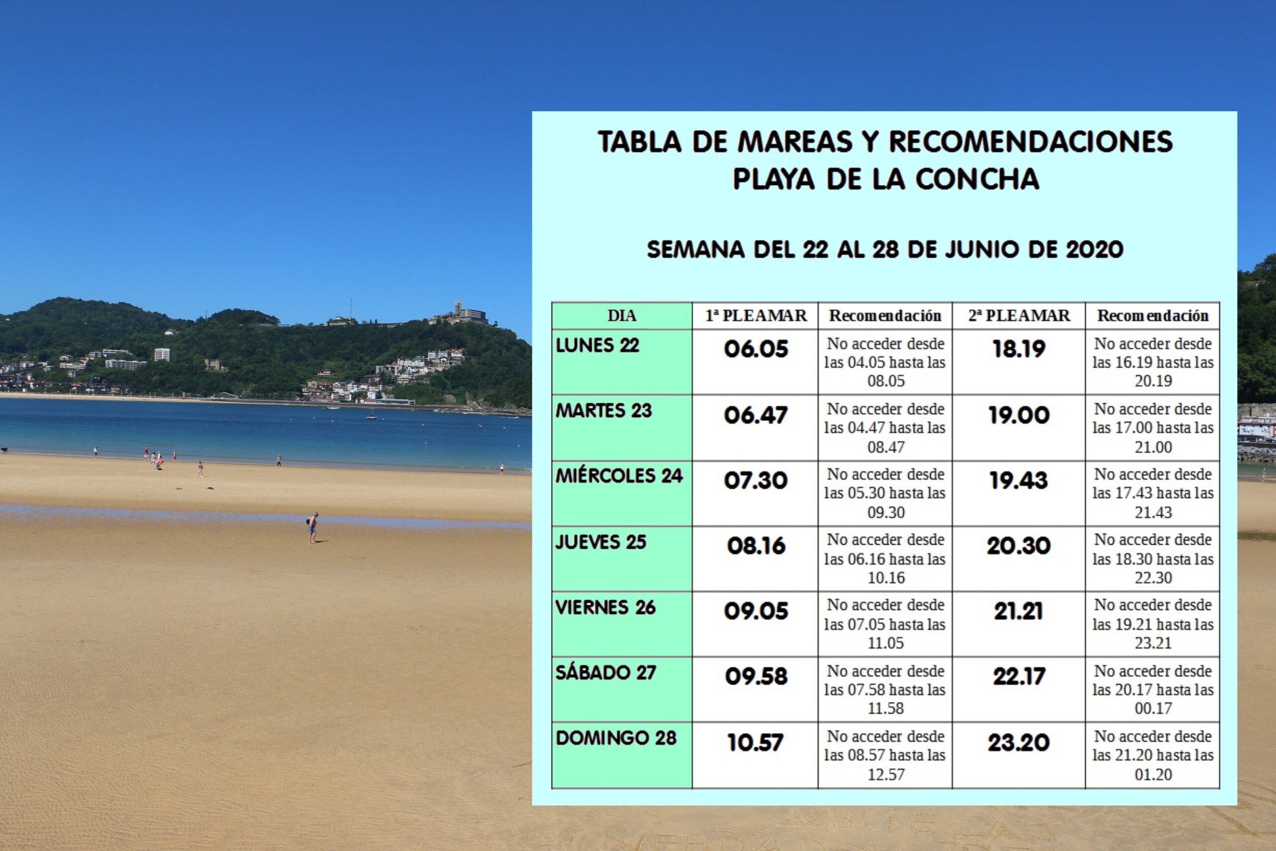 Playa de la Concha: tabla de pleamares 22 de junio-28 de junio