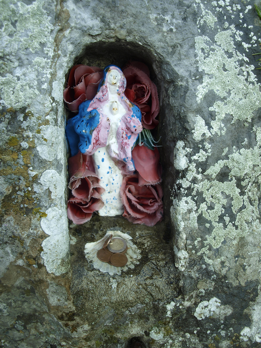 No hace mucho, caminé por este mágico rincón de nuestra montaña, donde aún hoy encontré unas monedas que algún caminante había dejado allí con la esperanza de que alguien las llevara al Santuario de Aralar. Es hermoso ver como en estos tiempos súper tecnológicos, se mantienen todavía las antiguas tradiciones que nuestros antepasados nos han ido trasmitiendo con la sabiduría de los tiempos, y que nos enlazan directamente con un pasado lejano, muy lejano, pero que podemos tocar con la punta de los dedos en lugares como Ama Birgiñ Arria.