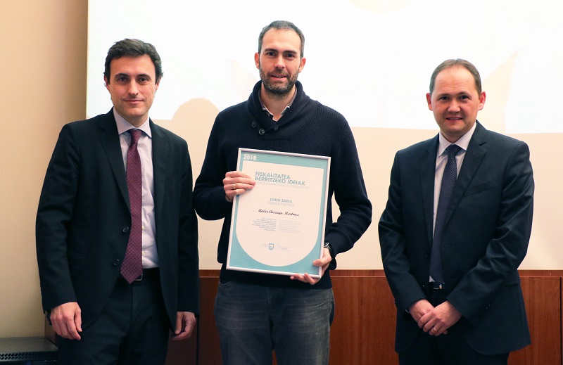 La segunda edición del Concurso de Ideas Innovadoras en Fiscalidad que ha lanzado la Diputación ha sido para Ander Arizaga. Él ha desarrollado una herramienta informática que permitiría al particular elegir el destino de su contribución, con el objetivo de que la ciudadanía visualice mejor a qué se destinan sus impuestos. Recibió el galardón (dotado con 1.500 euros y un ordenador portátil) ayer en la sede central de la Hacienda foral de Gipuzkoa, en Errotaburu, Donostia.