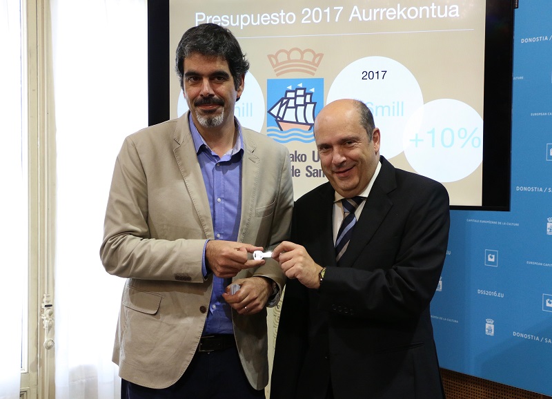 «Un Presupuesto netamente inversor para consolidar la recuperación económica y que fortalece el gasto social». Así son las cuentas que el alcalde Eneko Goia ha presentado hoy y quiere aprobar para que rijan las actuaciones del Ayuntamiento donostiarra en 2017. Se trata de un Presupuesto consolidado (es decir, que incluye las sociedades muncipales) que crece un 10% respecto al año anterior hasta situarse en los 416.260.408 euros y donde la inversión sube nada más y nada menos que un 68,8%.