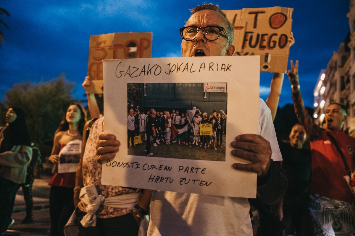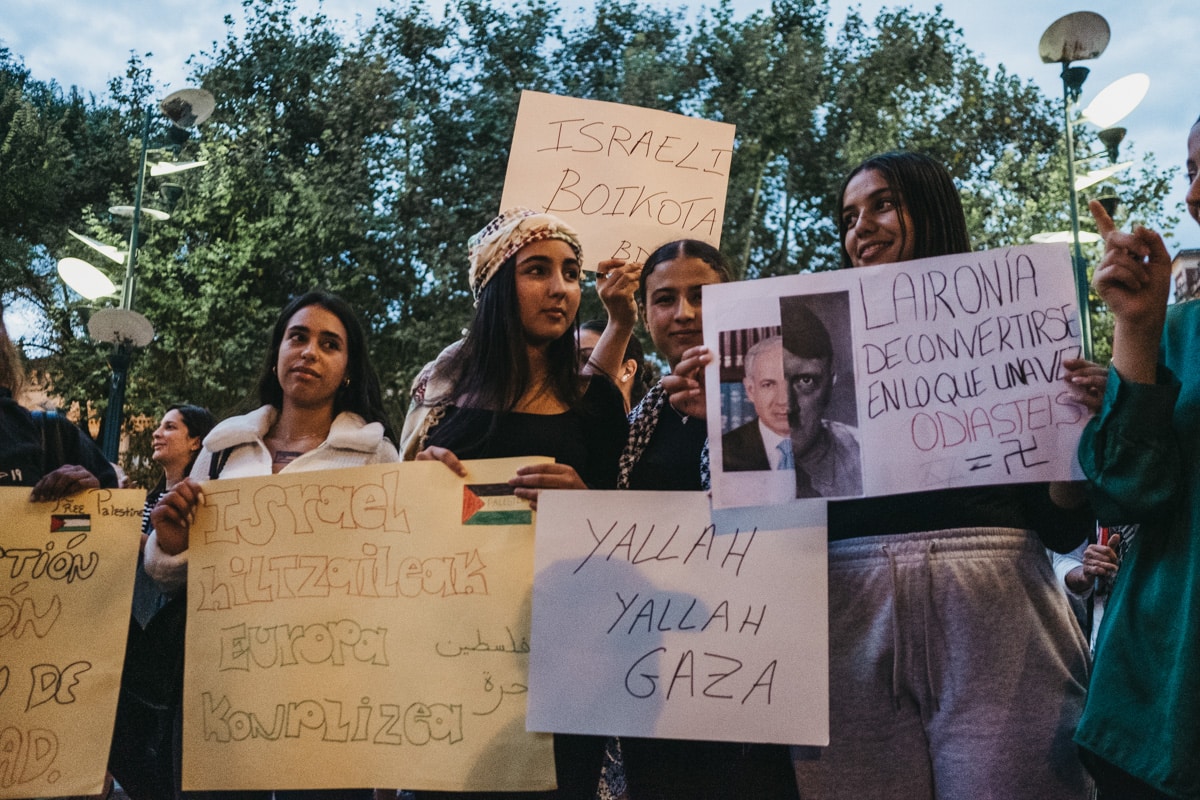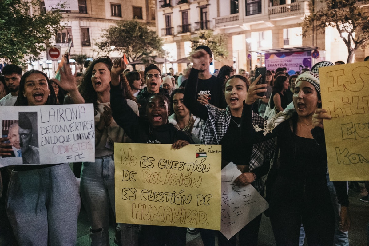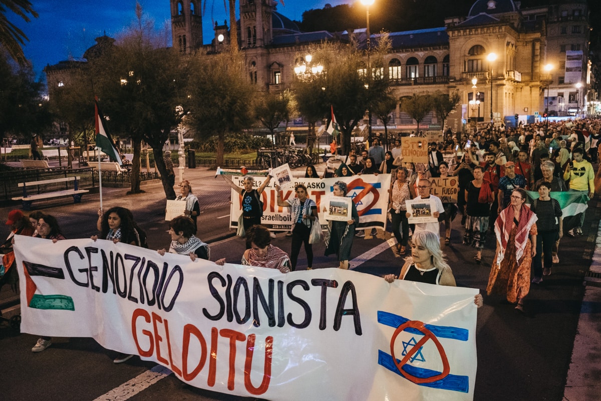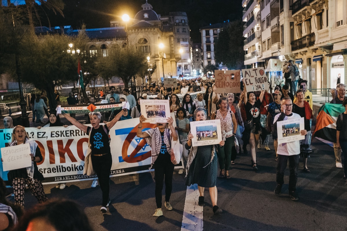 Más de un millar de personas se ha congregado hoy en Donostia en protesta por «el genocidio» de Israel contra el pueblo palestino y llamando al «boicot» contra el país hebreo.