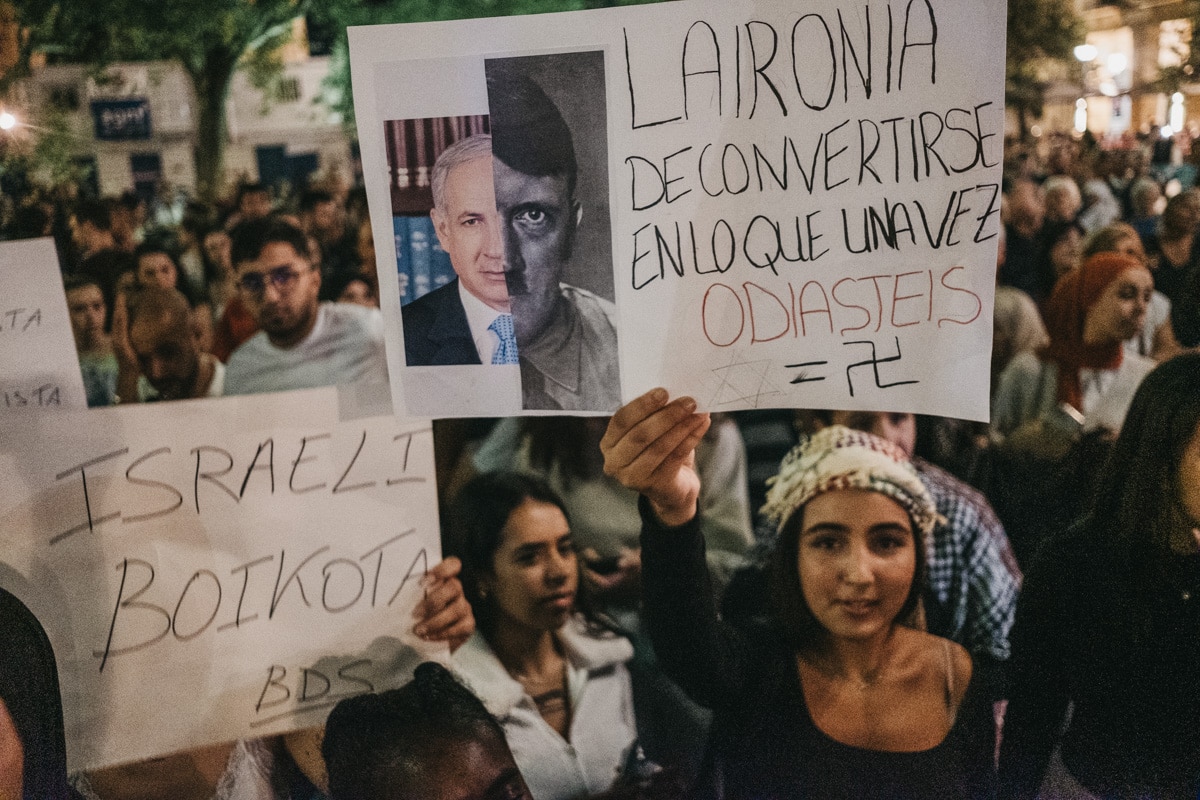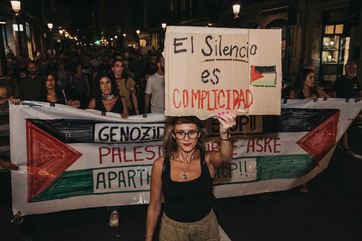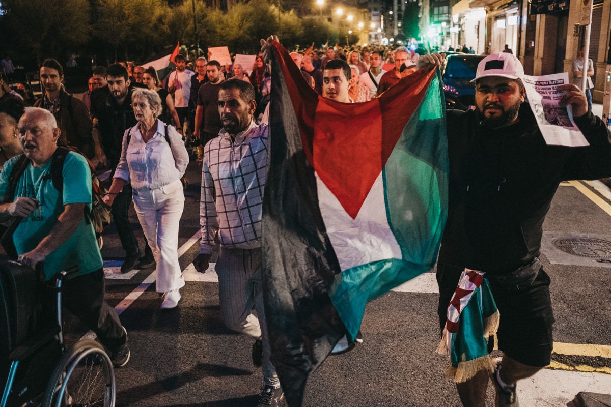 A las 19.30 horas ha partido la marcha desde el Boulevard con pancartas, banderas palestinas y constantes lemas como «No es una guerra, es un genocidio!», «¡Israel boicot!» o «Netanyahu, ¡criminal de guerra!».