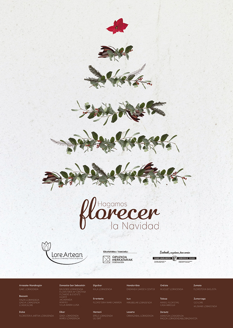 LoreArtean, Asociación de Profesionales de la Flor de Gipuzkoa, ha puesto en marcha estos días la campaña de comunicación ‘¡Que florezca la Navidad!‘ y a lo largo de estas Navidades llevará a cabo varias acciones para prestigiar el oficio de los profesionales de la flor y fomentar diferentes tipos de consumo en las floristerías coincidiendo con la campaña navideña.